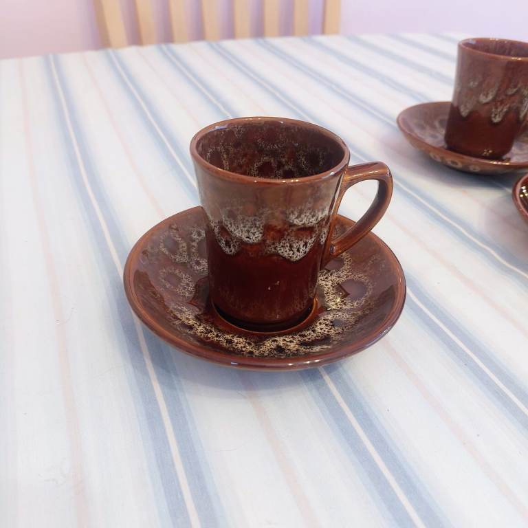 Kernewek Pottery Drip Glaze Coffee Cups and Saucers Set – Good Condition