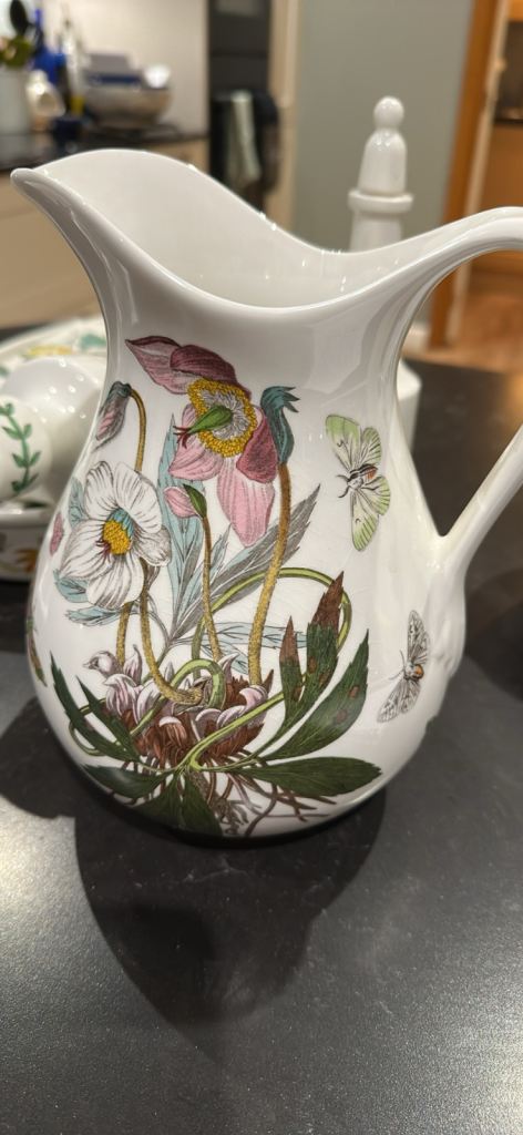 Botanic Garden 20 cm pitcher jug. Retired Christmas Rose design from the 1970s. Features flowers and butterflies. Beautiful statement piece. £30