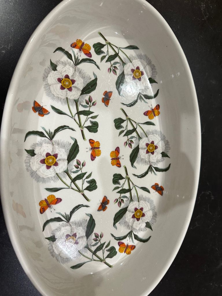 Vintage Botanic Garden oval baking & serving dish. ‘White Cistus’ design. Fully vitrified, dishwasher safe. Used but v good condition £25