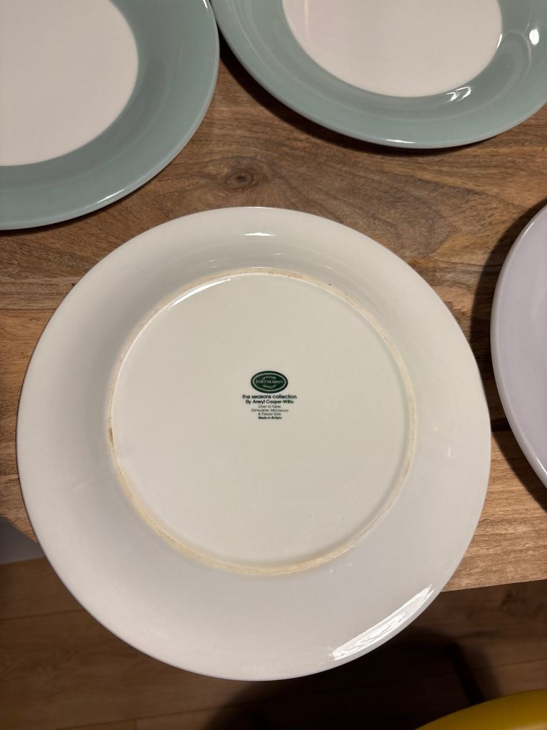 8 large (31cm diameter) original Portmeirion dinner plates in 3 different colours: