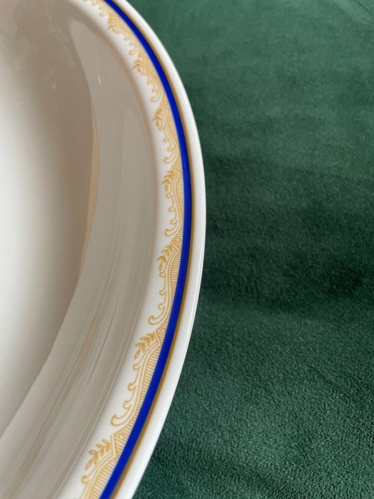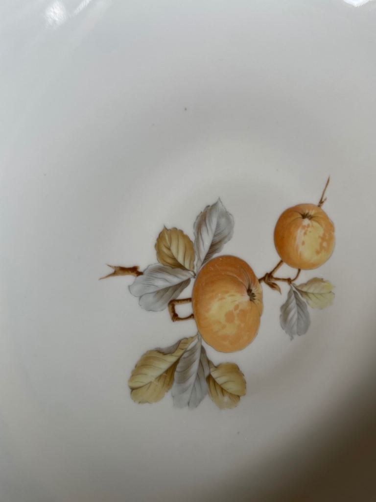 Design: Fruit motif with blue and gold rim
