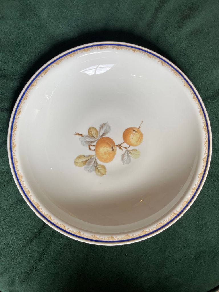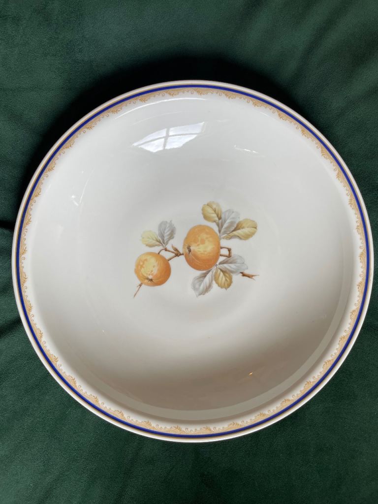 Serving Bowl, Hutschenreuther Bavaria Porcelain Serving Bowl Blue & Gold Rim Fruit Design Vintage