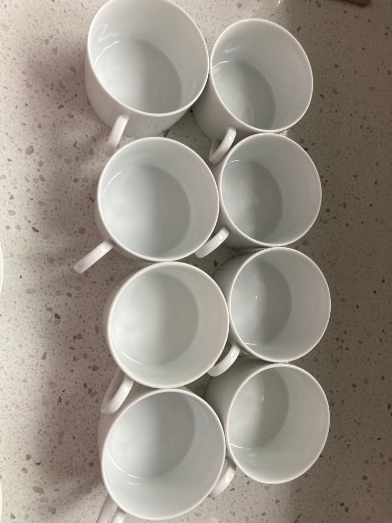 Set of 8 Marks & Spencer White Maxim Cups & Saucers, used once.