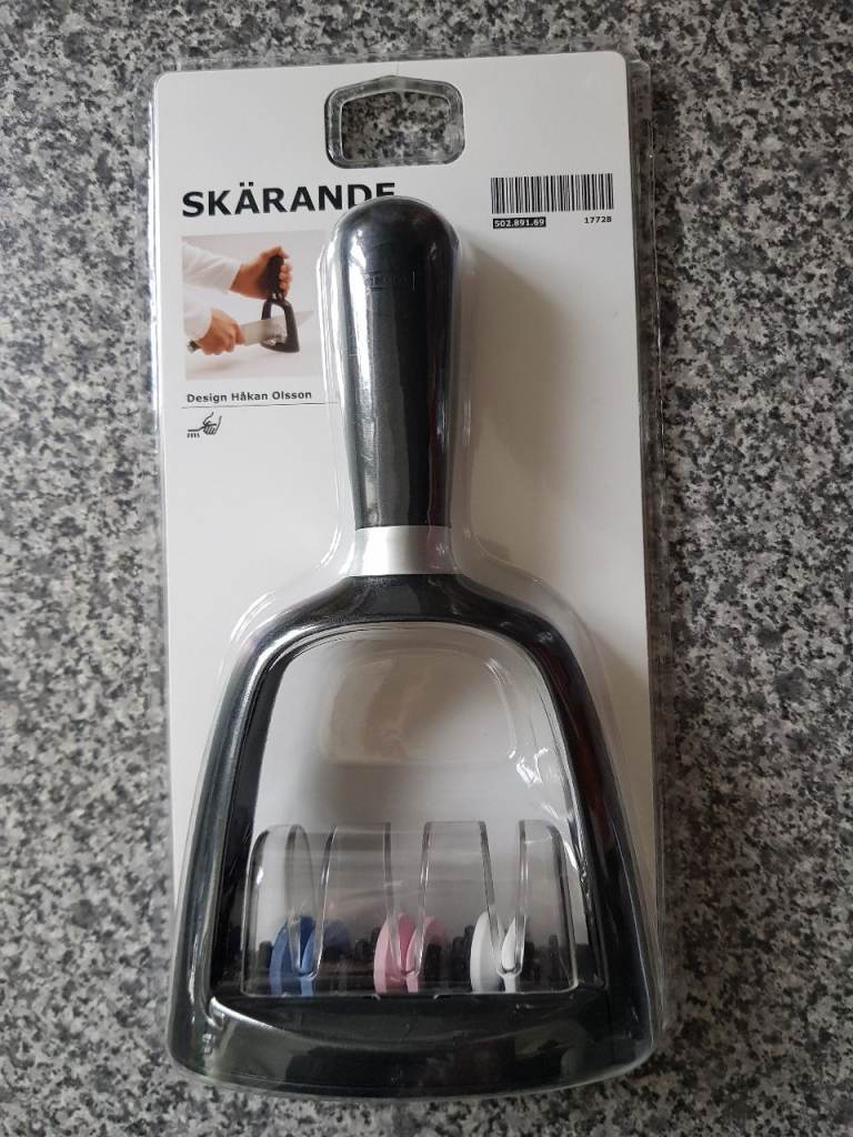 Brand new unopened Ikea SKÄRANDE Knife Sharpener. Sharp, sharper, sharpest. This knife sharpener has 3 different slots for coarse, medium and fine sharpening.