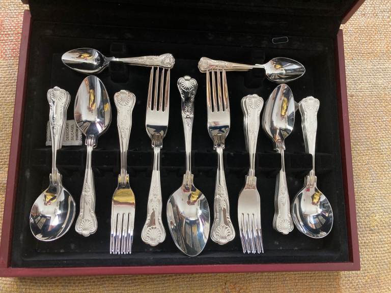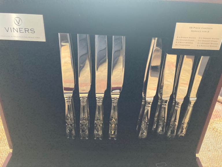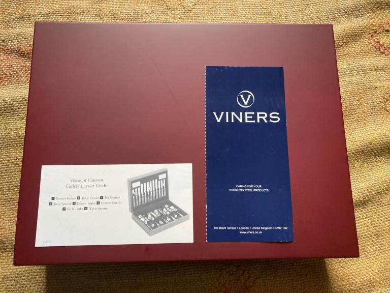 Posting for 16+ yearsViners Viscount 8-place Canteen of Cutlery in stainless steel. Never used.