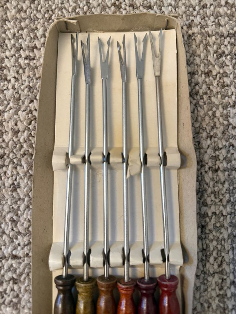 Vintage stainless steel fondue fork set of 6 - wooden handles