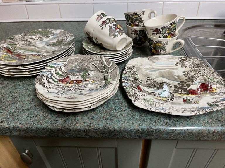 Beautiful Design Christmassy. 6 tea plates 6 slightly larger plates and one bread & butter plate not used. All stored away for years.