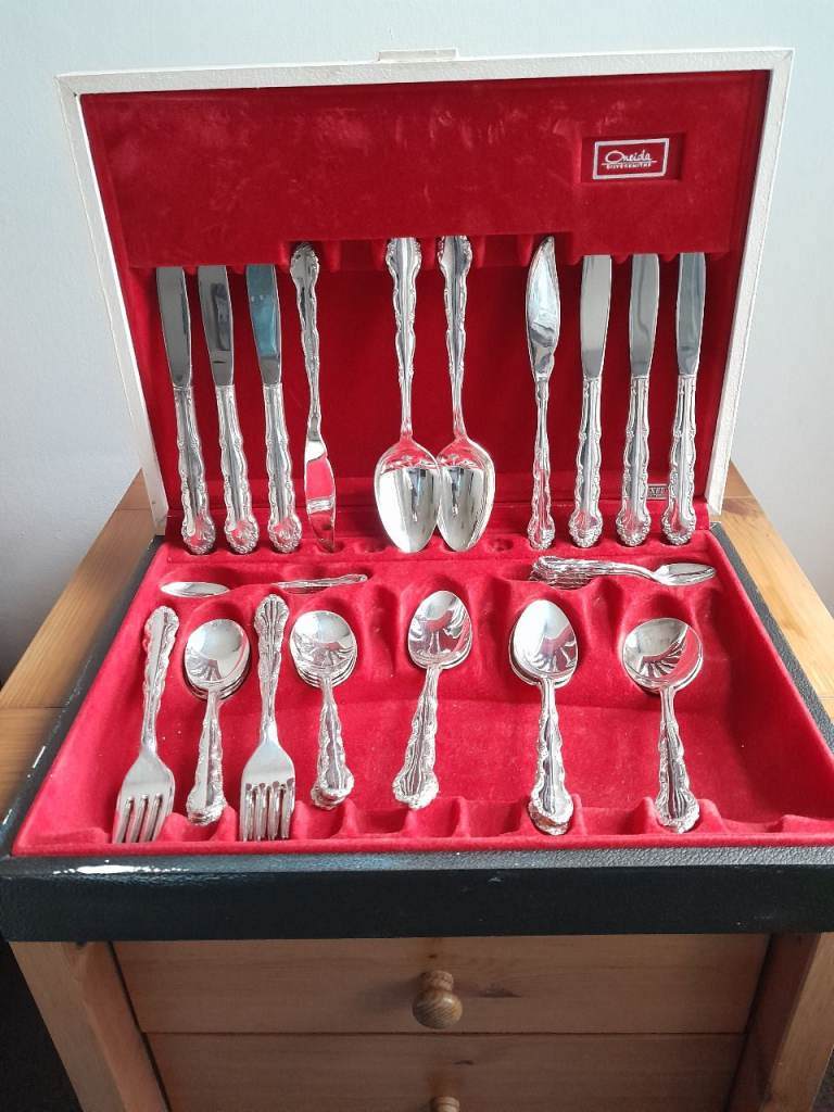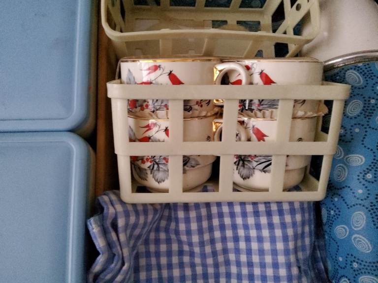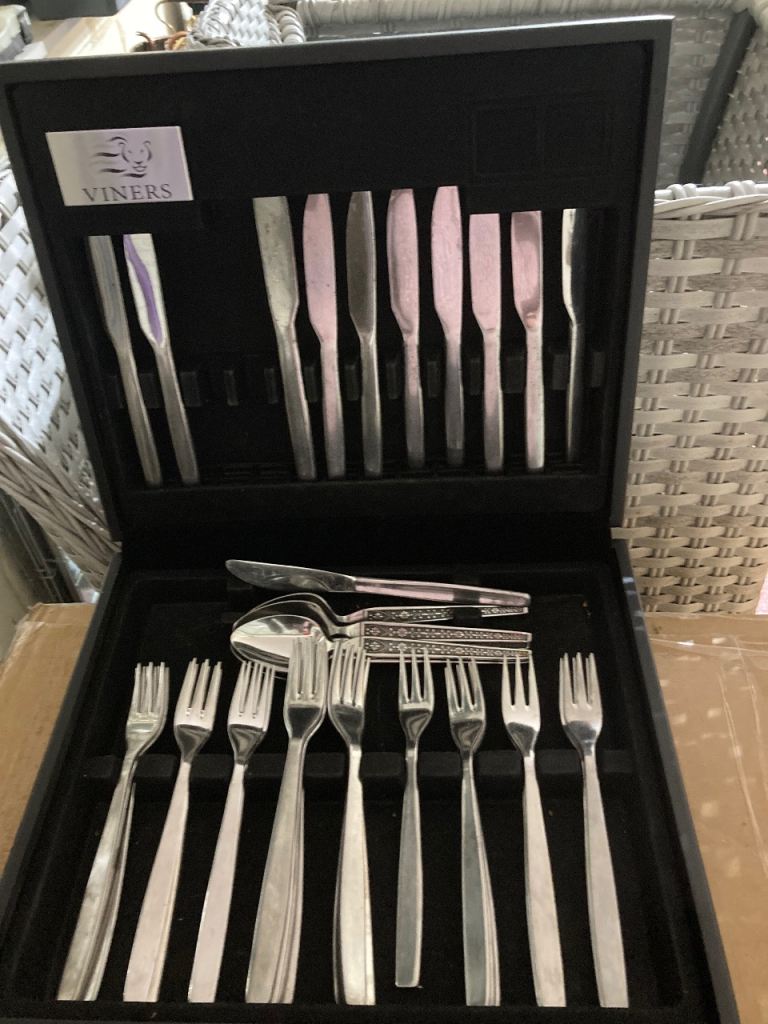 Fabulous old picnic set - 1950's/60's - in it's own carrying case. Real cutlery and crockery. PERFECT for a window display in vintage shop!
