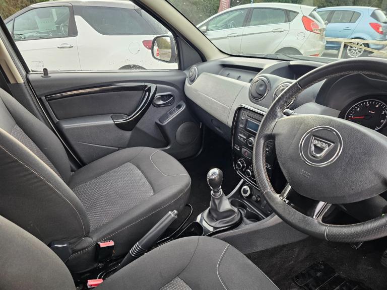 This 2014 Dacia Duster 1.5 dCi Laureate SUV with 93000 miles on the clock is a reliable Diesel. With 5 seats and 5 doors, this SUV provides ample space for passengers and cargo. It comes equipped with a 1.5 dCi engine, manual transmission, and 4WD Euro 5, delivering 110 ps of power. The exterior features 16in Alloy Wheels - Everest, Black Lower Section Bumpers, Body Coloured Upper Section Bumpers, Chrome Front Grille, and Chrome Number Plate Surround with Duster Inscription. Whether for daily commutes or off-road adventures, this Dacia Duster offers a combination of practicality and style for its next owner. Features Include: , 16in alloy wheels - everest, bumpers - front and rear lower section in black, bumpers - front and rear upper section - body coloured, chrome front grille, chrome number plate surround with duster inscription, door handles - satin chrome, door mirrors - body coloured, door mirrors - heated and electrically adjustable, electric windows - front and rear, emergency spare wheel, heated rear window, roof bars - longitudinal - satin chrome, scuff plates - front and rear - satin chrome, side sills - satin chrome, steering wheel - chrome logo surround, tinted windows, abs - anti-lock braking system, asr - traction control, airbags - driver, airbags - front passenger, airbags - front passenger deactivation, airbags - front side, automatic door relocking system, central locking - remote, child locks in rear doors, driver and front passenger seat belt unfastened - visual and audible warning, eba - emergency brake assist, ebd - electronic brakeforce distribution, esc - electronic stability control, front seatbelt pretensioners, isofix points for child seats in both outer rear seats, steering wheel - piano black lower insert, thatcham approved engine immobiliser, tyre jack and tools, aux input, bluetooth connectivity, radio with cd player including mp3 cd reader with fingertip controls, speakers - x4 - 20w, usb connection for mp3 players, air recirculation - 4-speed heating and ventilation, air vents - chrome surrounds, air vents for rear passengers, black door sill protection strip, boot light, centre console surround - piano black, cigarette lighter and removable ashtray, decorative inserts on front and rear door panels - piano black, gear lever cap insert - chrome, glovebox light, grab handles - rear passenger with coat hook, headrests - rear height adjustable x3, height-adjustable drivers seat, height-adjustable front headrests,