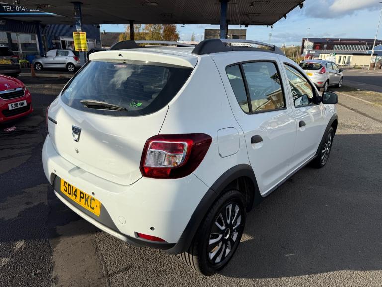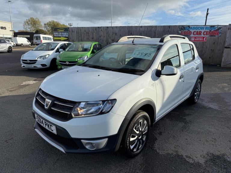For sale is this stylish and economical 2014 Dacia Sandero Stepway 1.5 dCi Laureate finished in crisp white, priced at £3995 with just 57,337 miles. This practical hatchback offers rugged SUV styling with the running costs of a small car, powered by the reliable and efficient 1.5 litre dCi diesel engine. Costing only £20 per year to tax, it is an ideal choice for drivers seeking low running costs, comfort, and reliability. This Vehicle Has a full Service History and 2 Keys.The Laureate model offers a generous level of standard specification including a multimedia touchscreen system, Bluetooth connectivity, air conditioning, electric windows, and rear parking sensors for easy manoeuvring. Its raised ride height provides a commanding driving position while maintaining excellent fuel economy and a smooth, composed ride. The spacious interior and practical boot make it perfect for both city driving and weekend adventures.This example has had one previous owner and has been well looked after throughout its life. It comes complete with a 3 month Momentum mechanical warranty, 12 months AA Breakdown Cover, and a full 12 month MOT for added peace of mind.Available now at JDM Glasgow Motors, 243 Glasgow Road, Glasgow, G73 1SU.
