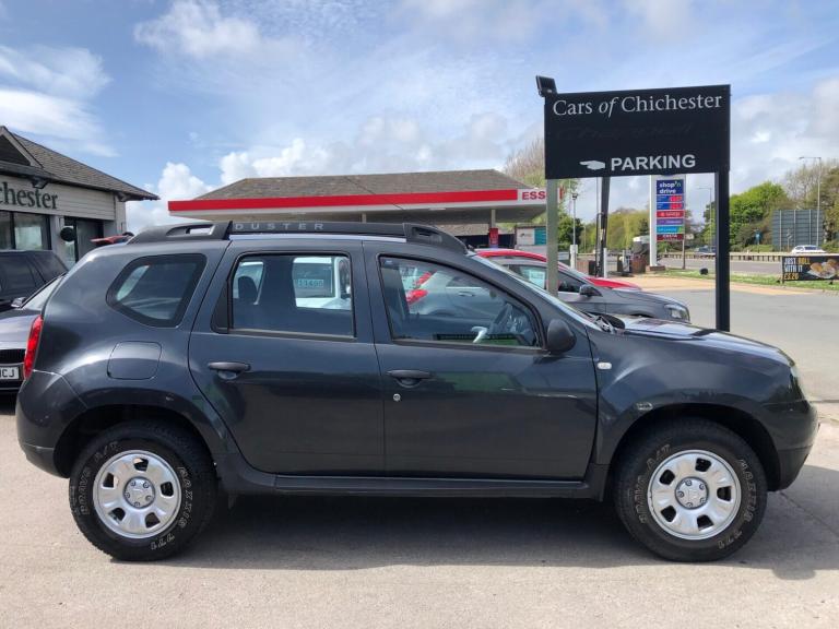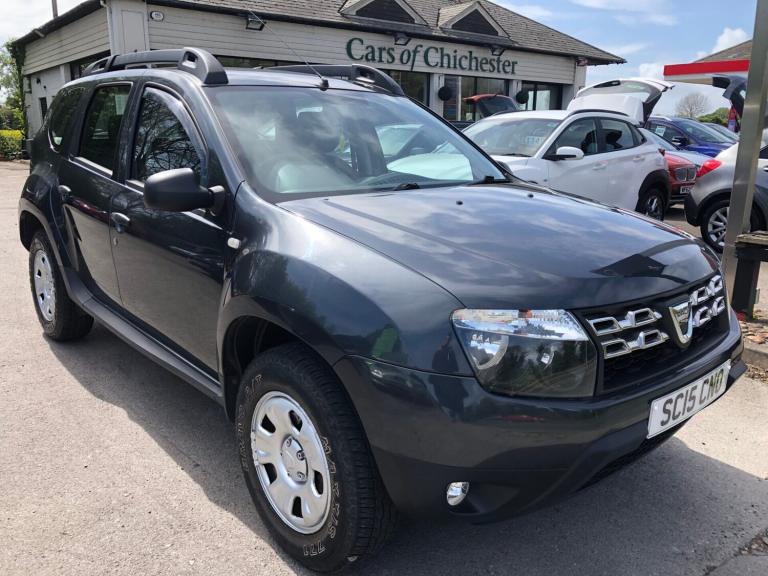 Mid 2015 3 owner Dacia Duster 1.5 DCI Ambience 4X4 diesel manual 6 speed featured in Slate Grey metallic which has covered 64,000 miles. Fantastic service history record including a recent cambelt+waterpump change; carried out at the following mileages 6,000, 14,000, 23,000, 32,000, 41,000, 48,000, 54,000, 57,000, 60,000, 62,000 and 63,000 miles. Specification includes radio CD, towbar with electrics, bluetooth phone, spare wheel, 60:40 split-folding rear seats, electric front windows, fog lights, remote central locking with 2 keys, 4WD Lock, rear child isofix and roof rails. Economical to run with 53.3 mpg combined fuel consumption and £200 annual road tax. Overall if you are looking for a practical medium sized 4X4 SUV with low mileage this is well worth coming in to see. All of our cars come with a national parts and labour warranty for 6 months. We also offer finance and a part exchange service. HPI checked and we do not charge admin fees. To find out more visit carsofchichester.co.uk or call us on 012437821111.