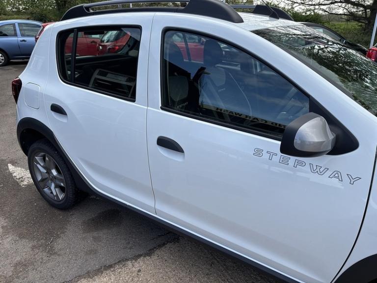 Dacia Sandero Stepway 0.9 TCe Laureate Hatchback 5dr Petrol Manual Euro 6 (s/s) (90 ps) ++ X2 FORMER KEEPERS SERVICE HISTORY ++ LOCALLY SORCED ++ LOW MILEAGE ++ LOW RUNNING COSTS ++ GREAT MPG ++ NEW MOT WHERE APPLICABLE ++ FREE COMPREHENSIVE PARTS & LABOUR WARRANTY ++ UK NATIONWIDE CONTACTLESS DELIVERY AVAILABLE ++ NO ADMIN FEE'S ++ COMPETITIVLY PRICED NATIONWIDE ++ Part Exchanges Welcome and we also Buy Cars for Cash! ++ Upgrade to a 12, 24 or 36 month Gold warranty from £299 plus VAT ++ Family run business ++ For further Information please ask one of our friendly sales team on our business number seven days a week.** Please note** We do our very best to be as accurate as possible, however please be aware some technical specification on vehicles can sometimes differ from that shown below, including the use of third party data. Please reconfirm any details that are important to you with a member of staff who will be happy to assist.++.Glacier White,Rear Parking Camera, 12V Power Socket by Gear Lever, 12V Socket for Rear Passengers, AUX Input, Bluetooth Connectivity, DAB-FM-AM Radio, Satellite Navigation - MediaNav Evolution 7in Touchscreen Multimedia System, USB Connection for MP3 Players, 7-Function On-Board Computer, Cruise Control and Speed Limiter, Door Open - Visual Warning, ECO Mode, Gear Shift Indicator, Rear Parking Sensors, Rev Counter, Tyre Pressure Monitor, 16in Steel Wheels - Stepway Design, Bumpers - Front and Rear Body Coloured, Chrome Front Grille, Door Handles - Black, Door Mirrors - Heated and Electrically Adjustable, Door Mirrors - Metal Grey, Electric Windows - Front, Electric Windows - Rear, Fog Lamp Embellisher - Satin Chrome, Heated Rear Window, Roof Bars - Satin Chrome, Side Sills - Black, Skid Plates - Front and Rear - Satin Chrome, Stepway Logo on Front Door Panel, Tinted Windows, Tyre Inflation Kit, Wheelarch Extensions, Front Fog Lights, Headlights - Double Optic with Chrome Surrounds, Headlights Left On - Audible and Visual Warning, High Level Third Brake Light, LED Automatic Daytime Running Lights, 3-Speed Front Windscreen Wipers, Air Recirculation - 4-speed Heating and Ventilation, Air Vents - Satin Chrome, Boot Light, Central Console Surround - Satin Chrome, Chrome Heating Control Inserts, Door Handles - Interior Front - Satin Chrome, Door Handles - Interior Rear - Satin Chrome, Door Panels - Dark Carbon, Front Courtesy Light, Front Passenger Grab Handle, Gear Knob - Leather, Headrests - Rear Height Adjustable x3, Height-Adjustable Drivers Seat, Height-Adjustable Front Headrests, Height-Adjustable Steering Wheel, Instrument Dial Surrounds - Satin Chrome, Manual Air Conditioning, Map Pockets on Front Seatbacks, Rear Passenger Grab Handles, Rear Washer-Wipe, Seats - 60-40 Split Folding Rear, Soft Feel Steering Wheel, Sunvisor with Vanity Mirror - Passenger, Power Assisted Steering, Raised Ride Height, 3-Point Rear Seatbelts x3, Airbags - Driver, Airbags - Front Passenger with Deactivation Function, Airbags - Front Side, Anti-intruder Automatic Door-locking System, Anti-lock Braking System - ABS and Emergency Brake Assist - EBA, Central Locking - Remote, Child Locks in Rear Doors, EBD - Electronic Brakeforce Distribution, ESC - Electronic Stability Control with ASR - Traction Control and Hill Start Assist - HSA, Height-Adjustable Front Seatbelts, ISOFIX Points for Child Seats in Both Outer Rear Seats, Seatbelt not Fastened - Visual and Audible Warning, Thatcham Approved Engine Immobiliser