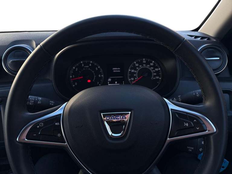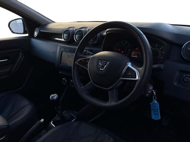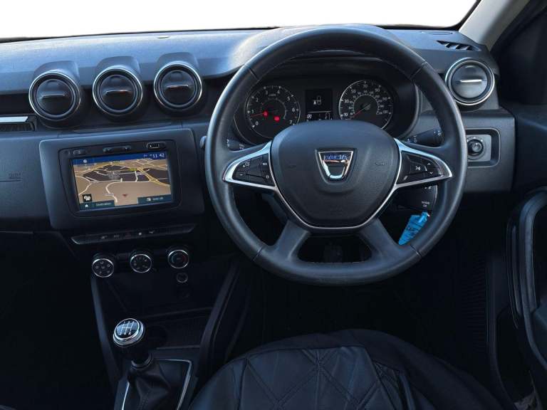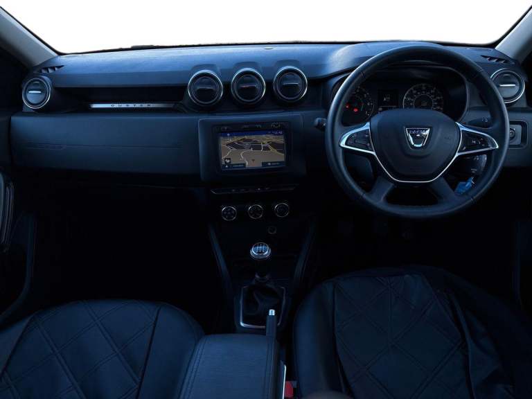 ..Bluetooth connectivity, Cruise control, Eco mode, Electric power assisted steering, MediaNav Evolution 7'' touchscreen multimedia system with satellite navigation with Apple car play and Android auto, On board computer, odometer, trip computer, average fuel consumption, average speed, service indicator, outside temperature gauge, Rear parking camera, Rear parking sensors, Rev counter, Speed limiter, Stop/start system, 4x 20W FM/AM/DAB tuner with steering column mounted fingertip controls, Aux-in socket, USB connection for MP3 players, 3 speed windscreen wipers, Black side sills, Body coloured door handles, Body coloured front and rear bumpers, Chrome front grille, Dark metal door mirrors in grey, Dark tinted windows, Double optic headlights, Dusk sensor, Electric adjustable/heated door mirrors, Electric front windows, Electric rear windows, Front door sill protection strip, Front fog lights, Heated rear window, High level third rear brake light, LED daytime running lights, Rear wash/wipe, Satin chrome front and rear skid plates, Satin chrome longitudinal roof bars, Tailgate trim with satin chrome Duster inscription in black background, 3 rear height adjustable headrests, 4 speed heating and ventilation with air recirculation, 60/40 split folding rear seat, Boot light, Driver seat lumbar adjustment, Fabric decorative insert on door panels, Front passenger reading light, Front seat armrests, Front under seat storage, Gear shift indicator, Glovebox light, Graphite cloth upholstery, Height adjustable driver seat, Height adjustable front headrests, Height adjustable steering wheel, Isofix points for child seats in both outer rear seats, Manual air conditioning, Map pocket on front seat backs, Passenger sunvisor with vanity mirror, Rear passenger reading light, Satin chrome gear lever cap insert, Satin chrome interior door handles, Satin chrome lower steering wheel insert, Soft feel steering wheel, 3x3 point rear seatbelts, ABS and Emergency brake assist, ASR traction control with Electronic stability control, Child locks on rear doors, Door open warning, Driver airbag, Driver and passenger seatbelt not fastened - visual and audible warning, Front passenger airbag deactivation, Front seatbelt pretensioners, Front side airbags, Height adjustable front seatbelts, Tyre pressure monitor, Remote central locking, Thatcham approved engine immobiliser, Dark carbon central console surround, Matt black central console fascia, Piano black decorative insert on door