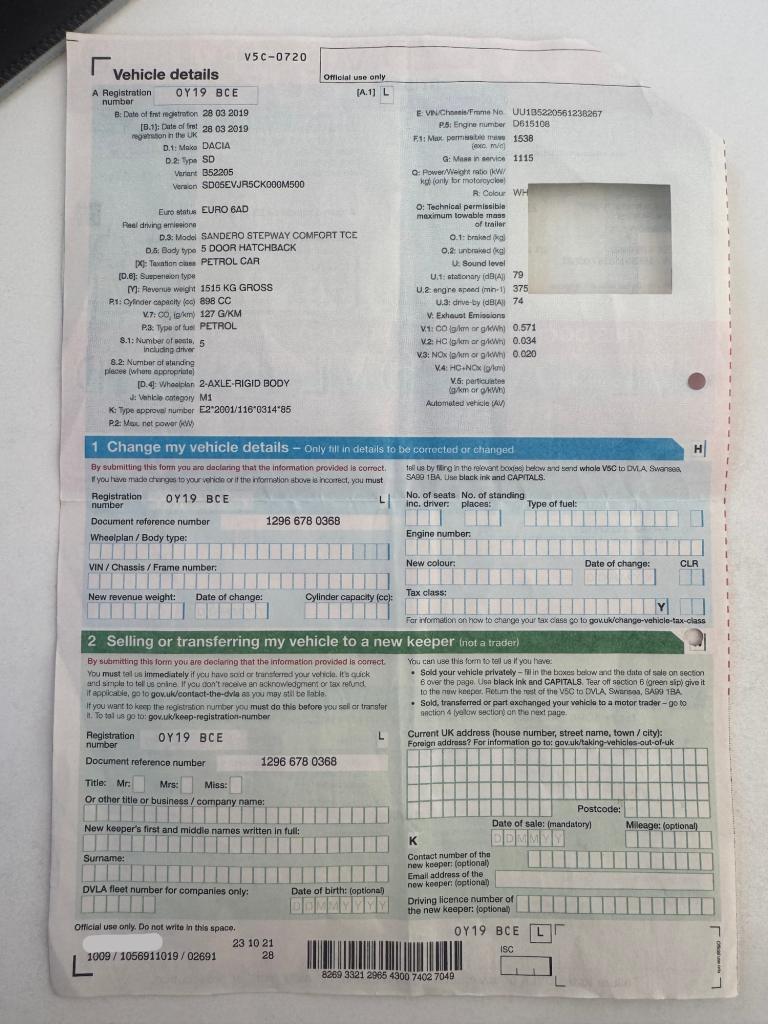 Posting for 5+ years2019 Dacia Sandero Stepway 0.9 TCe Comfort Hatchback 5dr Petrol Manual Euro 6