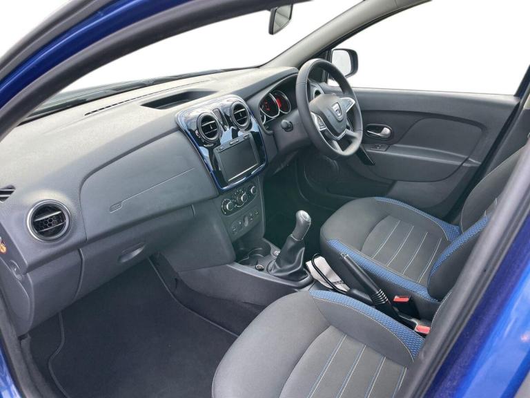 The Dacia Sandero Stepway 1.0 TCe Bi-fuel SE Twenty 5-door Hatchback, finished in Iron Blue, is a versatile and stylish vehicle that offers a comfortable and efficient driving experience. This 2020 model with 43,265 miles on the clock boasts a range of features including a mediaNav evolution 7"" touchscreen multimedia system with satellite navigation, smartphone voice recognition, and DAB/FM/AM radio with fingertip controls. The exterior is accentuated by black shiny door mirrors with blue striping, black side sills, and metal grey roof bars, while the interior is adorned with blue inserts in the cabin air vents, door handles, and gear lever. Safety features such as ESC with ASR, ABS, EBA, and multiple airbags ensure peace of mind on the road. With practical additions like front seat back map pockets, rear parking camera, and height-adjustable front headrests, this Dacia Sandero Stepway is an excellent choice for those seeking a reliable and feature-packed hatchback.