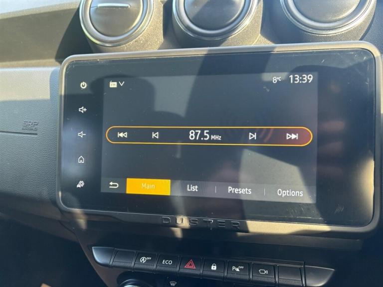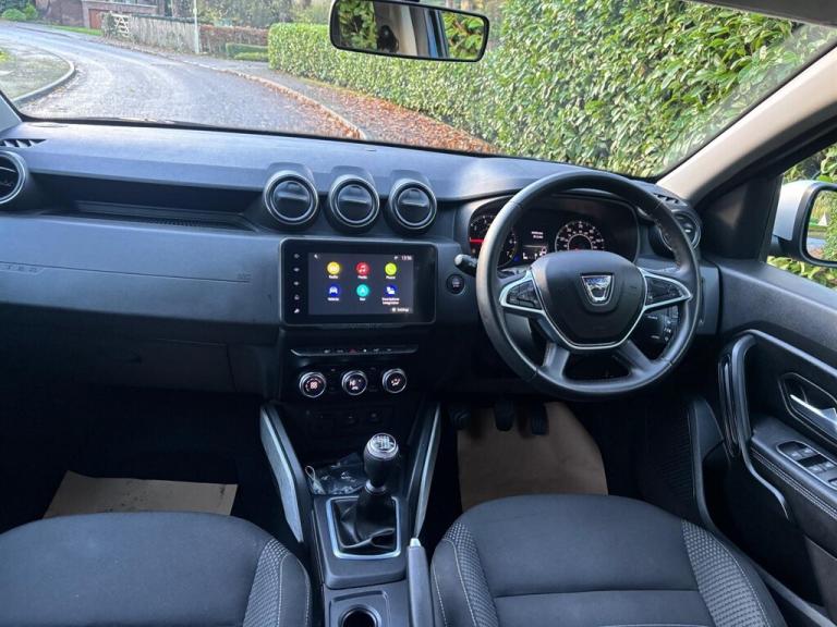 This 2022 Dacia Duster TCe Prestige is a superb example, having been owned by just one person from new. This Euro 6 compliant 1.0 litre petrol model offers a refined driving experience, enhanced by the Prestige trim level. You'll appreciate the convenience of keyless entry, allowing you to unlock and start the car without fumbling for keys. The dusk sensor automatically activates the headlights when light levels drop, providing added safety and peace of mind. Navigating tight spaces is made effortless with the multiview camera, offering a 360 degree view for parking assistance, while blind spot warning helps you stay aware of your surroundings. The Dacia Plug and Radio system keeps you connected and entertained with MP3, USB, Bluetooth, and DAB capabilities, all controllable from the steering wheel. This Duster boasts an impressive fuel economy of 46 miles per gallon, a highlight that demonstrates its efficiency compared to similar vehicles. Furthermore, its low CO2 emissions contribute to a more environmentally conscious drive. This combination of practical features, excellent fuel economy, and low emissions makes this Dacia Duster TCe Prestige a compelling choice.. 17in Alloy Wheels,3-Point Rear Seatbelts x3,3-Speed Front Windscreen Wipers,7-Function On-Board Computer,8in Media Nav and Smartphone Replication with Navigation,ASR - Traction Control with ESC - Electronic Stability Control,Acoustic Windshield,Air Vents - Satin Chrome,Airbags - Driver,Airbags - Front Passenger with Deactivation Function,Airbags - Front Side,Anti-lock Braking System - ABS and Emergency Brake Assist - EBA,Automatic Air Conditioning,Backlighted Steering Wheel,Blind Spot Warning,Body-Coloured Front and Rear Bumpers,Boot Light,Centre Console Fascia - Matt Black,Centre Console Surround,Child Locks in Rear Doors,Cruise Control and Speed Limiter,DRL - Daytime Running Lights,Dacia Plug and Radio - MP3 - USB - Bluetooth - DAB - Steering Wheel Control,Dark Glass on Lateral Rear Windows,Decorative Insert on Door Panels - Front,Decorative Insert on Door Panels - Rear - Piano Black,Door Handles - Body Coloured,Door Mirrors - Heated and Electrically Adjustable,Door Mirrors - Painted Grey Quartz,Door Open - Visual and Audible Warning,Driver and Passenger Seatbelt Not Fastened - Visual and Audible Warning,Dusk Sensor,ECO Mode,Electric Front Windows with Impulse on Drivers Side,Electric Windows - Rear,Fabric Decorative Insert on Front and Rear Door Panels,Front Door Sill Protection Strip,Front Fog Lights,Front Grille with Hot Stamping,Front Passenger Reading Light,Front Seatbelt Pretensioners,Gear Lever Cap Insert - Satin Chrome,Gear Shift Indicator,Glovebox Light,Headlights - Rear Lights - Front and Rear LED Lights - Y-Shape,Heated Rear Window,Heated Seats,Height and Depth-Adjustable Steering Wheel,Height-Adjustable Drivers Seat,Height-Adjustable Front Seatbelts,Height-Adjustable Front and Rear Headrests,High Centre Console with Driver Armrest,High Level Third Brake Light,Hill Start Assist,ISOFIX Points for Child Seats in Both Outer Rear Seats,Interior Door Handles - Front and Rear - Satin Chrome,Keyless Entry,Lower Steering Wheel Insert - Satin Chrome,Lumbar Seat Adjustment,Map Pockets on Front Seatbacks,Multiview Camera,Power Assisted Steering,Rear Parking Sensors,Rear Passenger Reading Light,Rear Wash and Wiper,Remote Central Locking,Rev Counter,Roof Bars - Longitudinal with Duster Inscription - Grey Quartz,Roof Spoiler - CO2 Efficient,Seats - 60-40 Split Folding Rear,Side Sills - Black,Skid Plates - Underbody Protection,Soft Feel Leather Steering Wheel,Steering Wheel - Chrome Logo Surround,Sunvisor with Vanity Mirror - Passenger,Tailgate Trim with Duster Inscription - Black-Satin Chrome,Thatcham Approved Engine Immobiliser,Tyre Inflation Kit,Tyre Pressure Monitor,Cloth - Black with Grey Stitching