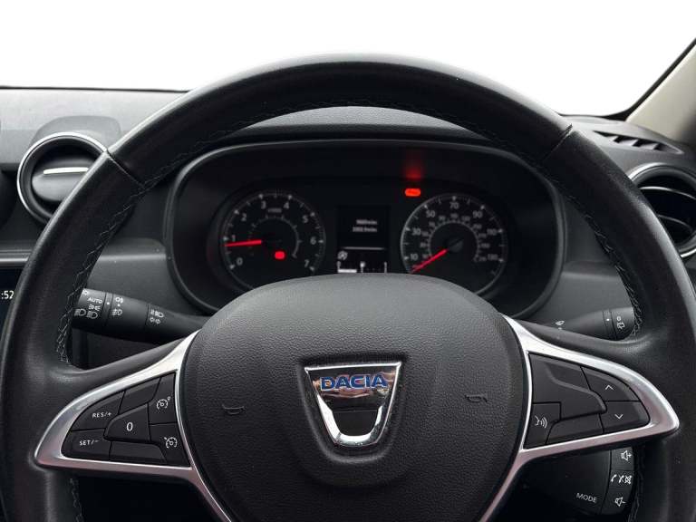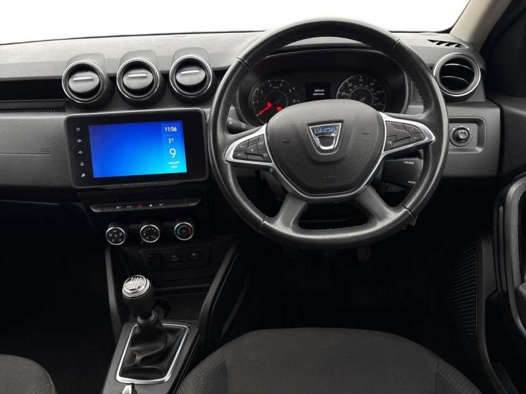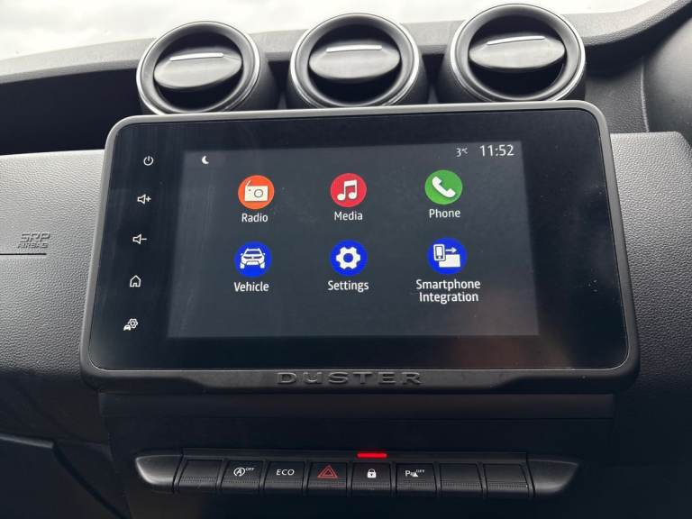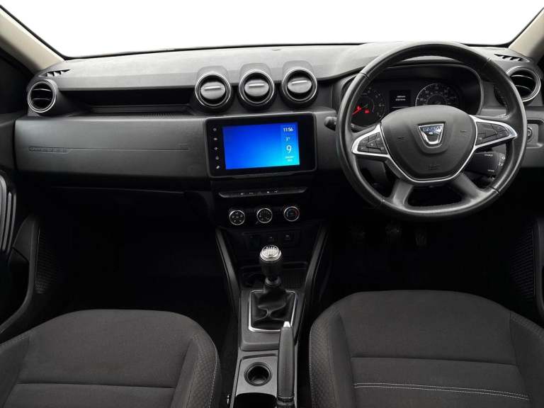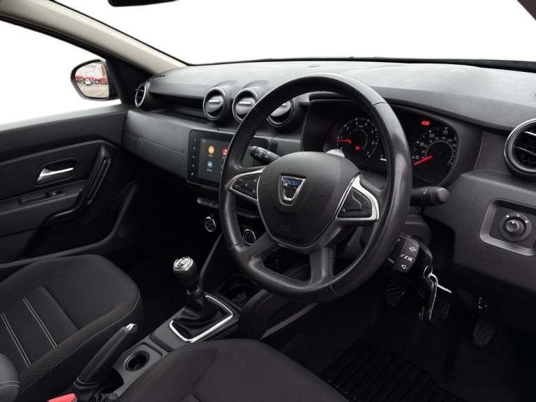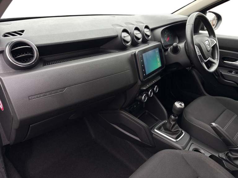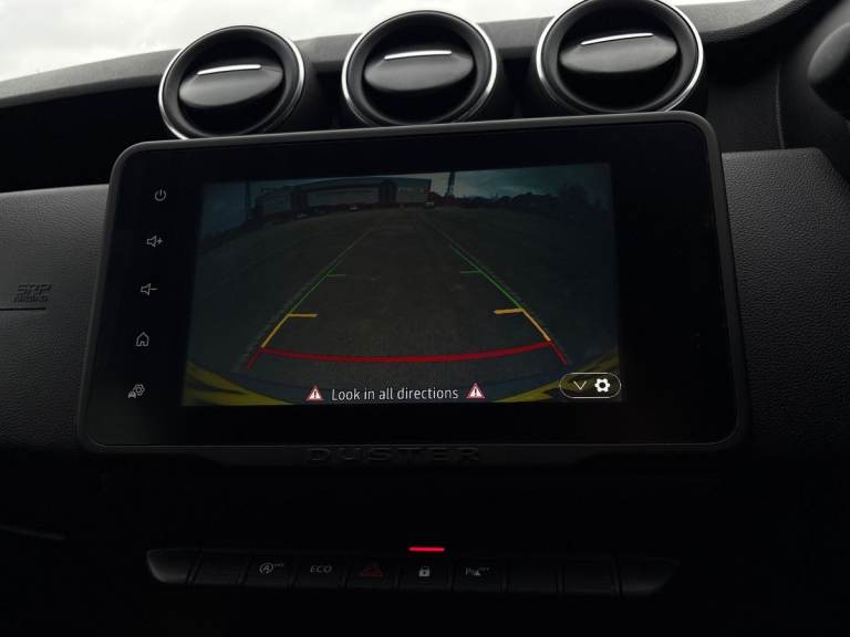 ..4x4 monitor with altimeter, Compass functional at 0km/h, Cruise control and speed limiter, Dacia instrument cluster, Eco mode, Electric power assisted steering, On board computer, odometer, trip computer, average fuel consumption, average speed, service indicator, outside temperature gauge, Rear parking sensors and reverse camera, Rev counter, Stop/start system, 8'' Media display with smartphone replication, 2 usb sockets and 6 speakers, Dacia plug and radio/MP3/USB/bluetooth/DAB/steering wheel control, 3 speed windscreen wipers, Black door mirrors, Black longitudinal roof bars with Duster inscription, Black side sills, Black/satin chrome tailgate trim with Duster inscription in black background and lettering, Body coloured door handles, Chrome front grille with hot stamping, Chrome logo surround on steering wheel, Dusk sensor, Electric adjustable/heated door mirrors, Electric front windows, Electric rear windows, Front and rear body coloured bumpers, Front door sill protection strip, Front fog lights, Heated rear window, High level third rear brake light, LED automatically switched on - In main headlights, LED daytime running lights, Rear spoiler, Rear wash/wipe, Tinted windows, Underbody protection skid plates, Y shaped LED headlights with rear LED lights, 3 rear height adjustable headrests, 60/40 split folding rear seat, Backlighted steering wheel buttons, Boot light, Driver seat lumbar adjustment, Fabric decorative insert on door panels, Fabric upholstery, Front head restraints, Front passenger reading light, Gear shift indicator, Glovebox light, Height adjustable driver seat, Height adjustable front and rear headrests, Height and depth adjustable steering wheel, High centre console with driver armrest, Isofix points for child seats in both outer rear seats, Manual air conditioning, Map pocket on front seat backs, Passenger sunvisor with vanity mirror, Rear passenger reading light, Satin chrome interior door handles, Satin chrome lower steering wheel insert, Soft feel leather steering wheel, 3x3 point rear seatbelts, ABS and Emergency brake assist, ASR traction control with Electronic stability control, Child locks on rear doors, Door open visual and audible warning, Driver airbag, Driver and passenger seatbelt not fastened - visual and audible warning, Front passenger airbag, Front passenger airbag deactivation, Front seatbelt pretensioners, Front side airbags, Height adjustable front seatbelts, Hill start assist, Tyre pressure monitor, Remote