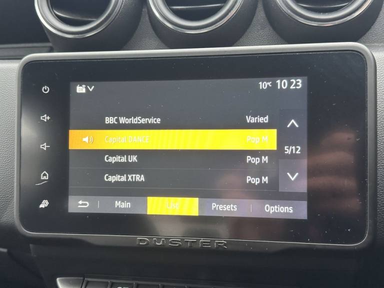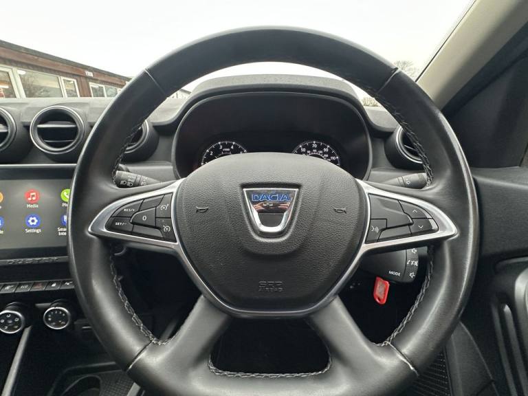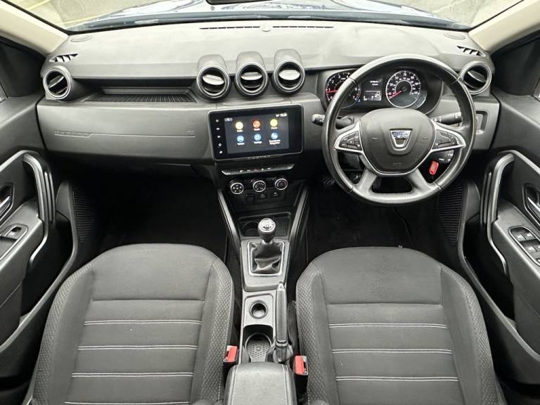 .16in Alloy Wheels, 3-Point Rear Seatbelts x3, 3-Speed Front Windscreen Wipers, 7-Function On-Board Computer, 8in Media Display and Smartphone Replication with 2 USB Sockets and 6 Speakers, ASR - Traction Control with ESC - Electronic Stability Control, Air Vents - Satin Chrome, Airbags - Driver, Airbags - Front Passenger with Deactivation Function, Airbags - Front Side, Anti-lock Braking System - ABS and Emergency Brake Assist - EBA, Backlighted Steering Wheel, Body-Coloured Front and Rear Bumpers, Boot Light, Centre Console Fascia - Matt Black, Centre Console Surround, Child Locks in Rear Doors, Cruise Control and Speed Limiter, DRL - Daytime Running Lights, Dacia Plug and Radio - MP3 - USB - Bluetooth - DAB - Steering Wheel Control, Decorative Insert on Door Panels - Front, Door Handles - Body Coloured, Door Mirrors - Heated and Electrically Adjustable, Door Mirrors - Painted Black, Door Open - Visual and Audible Warning, Driver and Passenger Seatbelt Not Fastened - Visual and Audible Warning, Dusk Sensor, ECO Mode, Electric Front Windows with Impulse on Drivers Side, Electric Windows - Rear, Fabric Decorative Insert on Front and Rear Door Panels, Front Door Sill Protection Strip, Front Fog Lights, Front Grille with Hot Stamping, Front Passenger Reading Light, Front Seatbelt Pretensioners, Gear Shift Indicator, Glovebox Light, Headlights - Rear Lights - Front and Rear LED Lights - Y-Shape, Heated Rear Window, Height and Depth-Adjustable Steering Wheel, Height-Adjustable Drivers Seat, Height-Adjustable Front Seatbelts, Height-Adjustable Front and Rear Headrests, High Centre Console with Driver Armrest, High Level Third Brake Light, Hill Start Assist, ISOFIX Points for Child Seats in Both Outer Rear Seats, Interior Door Handles - Front and Rear - Satin Chrome, Lower Steering Wheel Insert - Satin Chrome, Lumbar Seat Adjustment, Manual Air Conditioning, Map Pockets on Front Seatbacks, Power Assisted Steering, Rear Parking Camera, Rear Parking Sensors, Rear Passenger Reading Light, Rear Wash and Wiper, Remote Central Locking, Rev Counter, Roof Bars - Longitudinal with Duster Inscription - Black, Roof Spoiler - CO2 Efficient, Seats - 60-40 Split Folding Rear, Side Sills - Black, Skid Plates - Underbody Protection, Soft Feel Leather Steering Wheel, Steering Wheel - Chrome Logo Surround, Sunvisor with Vanity Mirror - Passenger, Tailgate Trim with Duster Inscription - Black-Satin Chrome, Thatcham Approved Engine Immobiliser, Tinted Windows, Tyre Inflation Kit, Ty