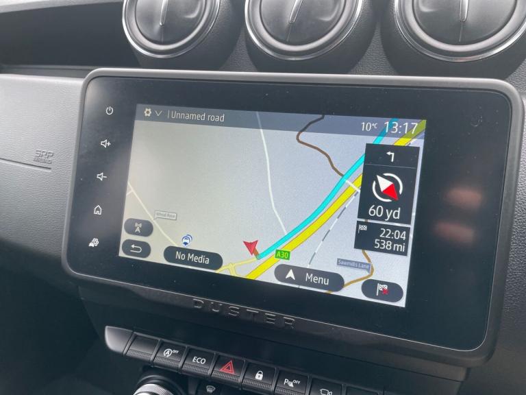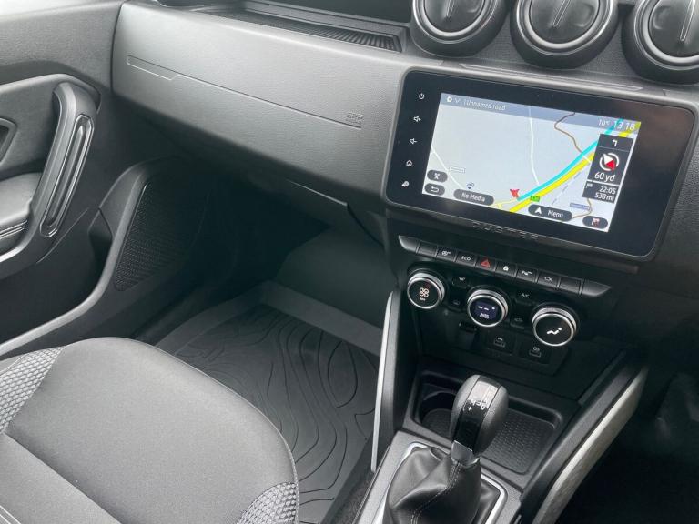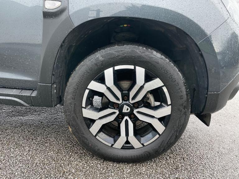 The Dacia Duster 1.3 TCe 150 Prestige 5Dr EDC Estate in Grey is a rugged and capable SUV that offers both style and functionality. With only 8200 miles on the clock, this 2022 model is still in pristine condition. The exterior is accentuated by features such as 17"" Alloy wheels, black side sills, and grey quartz longitudinal roof bars with Duster inscription. The interior is designed for comfort and convenience, with heated seats, automatic air conditioning, and an 8"" Media Navigation system with wireless smartphone replication. Safety features include ABS, Emergency brake assist, Blind spot warning, and front, side, and curtain airbags. The Dacia Duster also comes equipped with modern technology like a multi-view camera, rear parking sensors, and a tyre pressure monitor. This SUV is perfect for those looking for a reliable and well-equipped vehicle for both urban driving and off-road adventures.