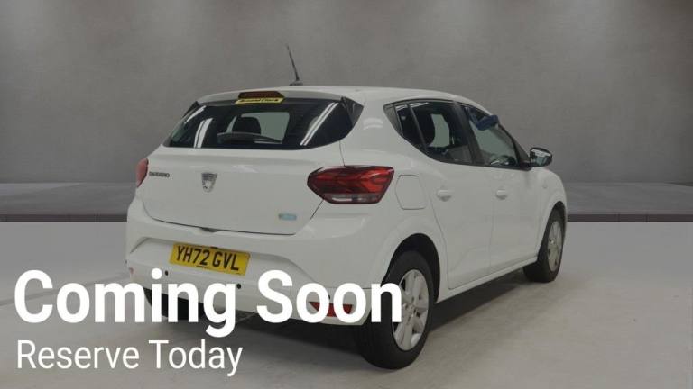 Why This Dacia Sandero Wins? This 2022 Dacia Sandero TCe Comfort is a fantastic low-mileage example, having covered just 12,143 miles from new with only one owner. Powered by an efficient 1.0L Euro 6 Bi-Fuel engine, it offers excellent running costs along with the flexibility of petrol and LPG capability. The Comfort trim adds a great level of equipment, making this practical hatchback an even smarter choice for everyday driving. Youll enjoy modern convenience thanks to automatic LED headlights that adapt to changing light conditions, while manual air conditioning keeps the cabin comfortable all year round. Inside, the 8-inch Media Display brings your journeys to life with DAB radio, Android Auto, and Apple CarPlay, ensuring seamless smartphone integration for music, calls, and navigation. Bluetooth connectivity adds further hands-free ease, and the included tyre inflation kit provides extra reassurance on the road. Your Peace of Mind? - Clear vehicle history check - Optional 3-36-month extendable warranties - Free 12-month AA roadside assistance - Fully prepared to showroom standard with its existing MOT and servicing, and we can organise any further MOT or service enhancements at your request. - Drive Away, Insurance Available - No hidden or extra costs, like admin fees Autotraders 2024 Insights: Top 3 Sandero Buyer Priorities: - Affordability and low running costs - Practicality and boot space - Simple, user-friendly technology - The Sandero delivers brilliantly on these priorities, offering outstanding value for money, one of the largest boots in its class for everyday practicality, and straightforward tech that keeps you connected without being complicated. Stress-Free Next Steps: - Free Part Exchange Valuation - £0 Deposit Car Finance - Includes free credit checker - Reserve for £99 - Fully refundable.8in Media Display with DAB Radio, Emergency Call - E-Call, Front 12v Plug, Pre-Wiring for Radio and Speakers, Rear 12v Plug, USB Connection for Data Transfer and Charging, USB Socket, 15in Steel Wheels - Flex, Bumpers - Front and Rear Body Coloured, Door Handles - Body Coloured, Door Mirrors - Body Coloured, Door Mirrors - Heated and Electrically Adjustable, Drivers One Touch Electric Windows and Rear Electric Windows, Heated Rear Window, Radiator Grille - Black, Tinted Windows, Tyre Inflation Kit, 3 Height-Adjustable Rear Headrests, 3-Speed Front Windscreen Wipers, Air Vents - Satin Chrome, Automatic Central Locking, Automatic Wiper, Deco Part on Instrument Panel and Door with Textile, Driver and Passenger Vanity Mirror with Cover, Fixed Smartphone Holder on Dashboard, Height and Depth-Adjustable Steering Wheel, Height-Adjustable Drivers Seat, Height-Adjustable Front Headrests, Interior Door Handles - Satin Chrome, Manual Air Conditioning, New 3.5in TFT Instrument Panel with Onboard Computer, Rear Washer-Wipe, Soft Feel Steering Wheel, Split Folding Rear Bench Seat Back - 1-3 - 2-3, Automatic Lighting System, Electric Power-Assisted Steering, Front Fog Lights, High Level Third Brake Light, LED Automatic Daytime Running Lights, LED Y Shape Dacia Lighting Signature, Cloth - Titanium Black, Glacier White, 3-Point Rear Seatbelts x3, 6 Airbags - Front and Side Driver and Passengers including Curtain Airbags, Anti-lock Braking System - ABS and Emergency Brake Assist - EBA, Automatic Emergency Braking System - AEBS, Central Locking - Remote, Child Locks in Rear Doors, Cruise Control and Speed Limiter, Door Open - Visual and Audible Warning, Driver and Passenger Seatbelt Not Fastened Warning, ECO Mode, ESC - Electronic Stability Control, ESP - Electronic Stability Programme and HSA - Hill Start Assist, Engine Immobiliser, Front Seatbelt Pretensioners, Gear Shift Indicator, Height-Adjustable Front Seatbelts, ISOFIX Points for Child Seats in Both Outer Rear Seats, Keyless Entry, Rear Parking Sensors and Rear-View Camera, Rev Counter, Tyre Pressure Monitor