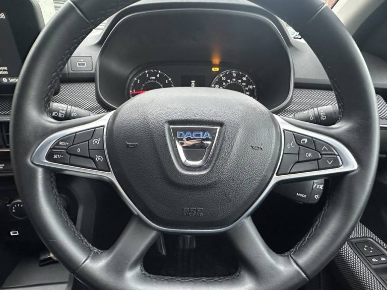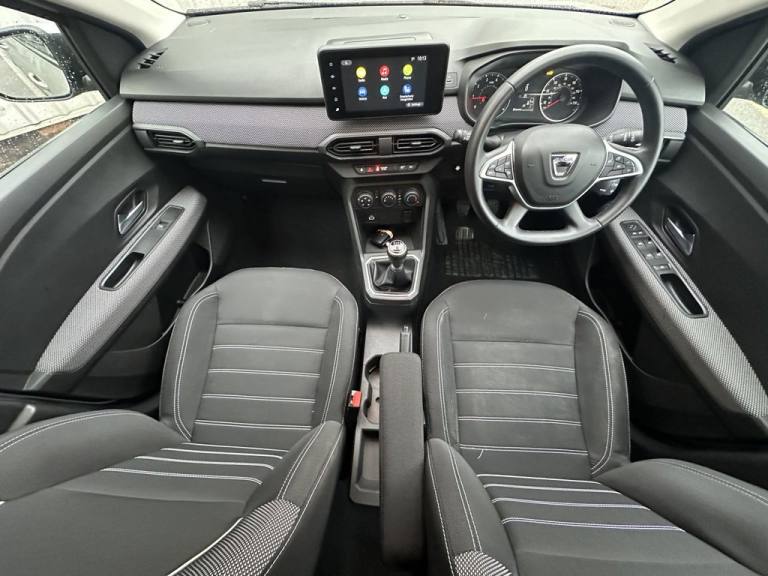 .15in Steel Wheels - Flex, 3 Height-Adjustable Rear Headrests, 3-Point Rear Seatbelts x3, 3-Speed Front Windscreen Wipers, 6 Airbags - Front and Side Driver and Passengers including Curtain Airbags, 8in Media Display with DAB Radio, Air Vents - Satin Chrome, Anti-lock Braking System - ABS and Emergency Brake Assist - EBA, Automatic Central Locking, Automatic Emergency Braking System - AEBS, Automatic Lighting System, Automatic Wiper, Bumpers - Front and Rear Body Coloured, Central Locking - Remote, Child Locks in Rear Doors, Cruise Control and Speed Limiter, Deco Part on Instrument Panel and Door with Textile, Door Handles - Body Coloured, Door Mirrors - Body Coloured, Door Mirrors - Heated and Electrically Adjustable, Door Open - Visual and Audible Warning, Driver and Passenger Seatbelt Not Fastened Warning, Driver and Passenger Vanity Mirror with Cover, Drivers One Touch Electric Windows and Rear Electric Windows, ECO Mode, ESC - Electronic Stability Control, ESP - Electronic Stability Programme and HSA - Hill Start Assist, Electric Power-Assisted Steering, Emergency Call - E-Call, Engine Immobiliser, Fixed Smartphone Holder on Dashboard, Front 12v Plug, Front Fog Lights, Front Seatbelt Pretensioners, Gear Shift Indicator, Heated Rear Window, Height and Depth-Adjustable Steering Wheel, Height-Adjustable Drivers Seat, Height-Adjustable Front Headrests, Height-Adjustable Front Seatbelts, High Level Third Brake Light, ISOFIX Points for Child Seats in Both Outer Rear Seats, Interior Door Handles - Satin Chrome, Keyless Entry, LED Automatic Daytime Running Lights, LED Y Shape Dacia Lighting Signature, Manual Air Conditioning, New 3.5in TFT Instrument Panel with Onboard Computer, Pre-Wiring for Radio and Speakers, Radiator Grille - Black, Rear 12v Plug, Rear Parking Sensors and Rear-View Camera, Rear Washer-Wipe, Rev Counter, Soft Feel Steering Wheel, Split Folding Rear Bench Seat Back - 1-3 - 2-3, Tinted Windows, Tyre Pressure Monitor, USB Connection for Data Transfer and Charging, USB Socket, Cloth - Titanium Black, Moonstone Grey