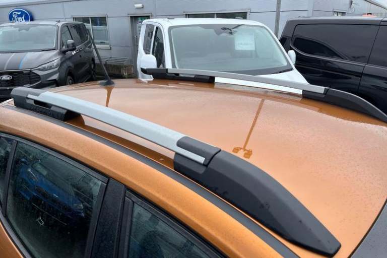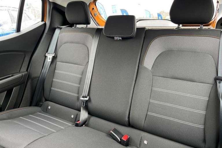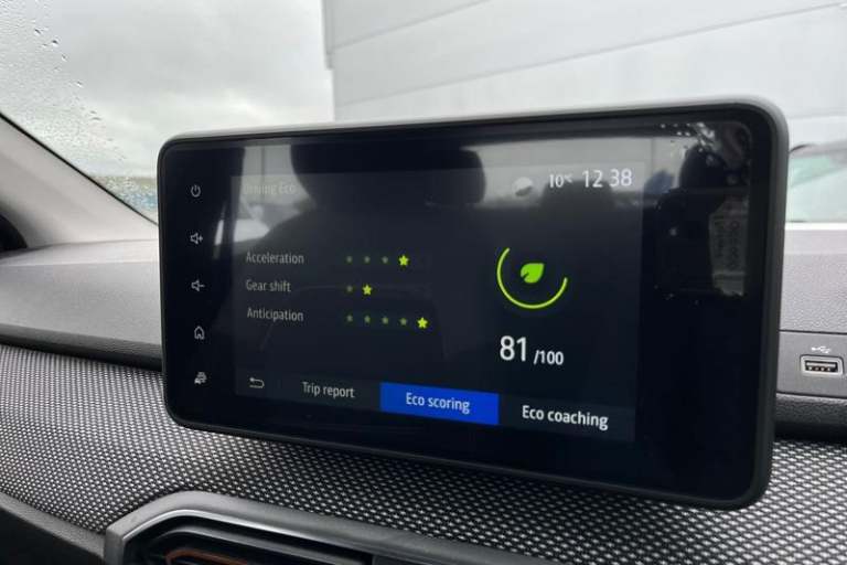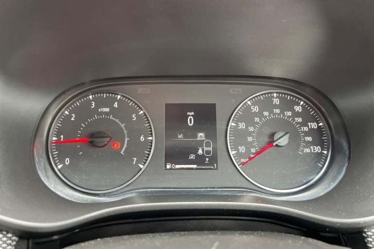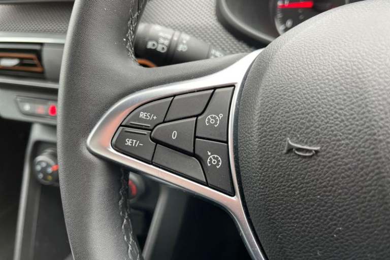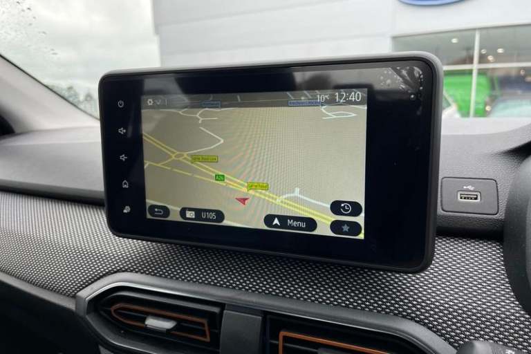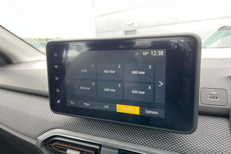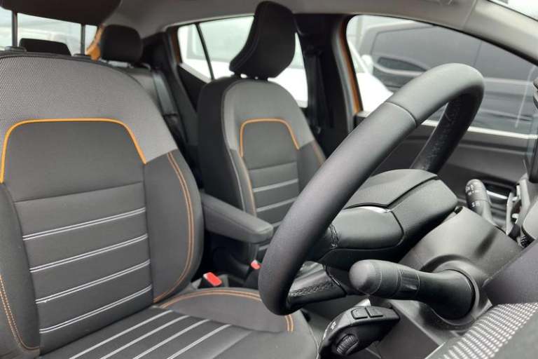 3.5 TFT instrument panel with on-board computer, Cruise control with speed limiter, eCall emergency call system, Eco mode, Electric power assisted steering, Rear parking sensors, Rev counter, Reversing camera, Stop/start system, 3 speed windscreen wipers, Auto lighting, Automatic wipers, Body colour door handles, Body colour door mirrors, Body coloured bumpers, Chrome longitudinal roof bars, Chrome radiator grille, Electrically adjustable and heated door mirrors, Front fog lights, Heated rear window, High level third brake light, LED automatic daytime running lights, LED Y-shape Dacia signature lighting, Modular roof bars, One touch electric front windows, Rear electric windows, Rear side wing doors, Rear wash/wipe, Stepway inscription on radiator grille and roof bars, Tinted windows, 1/3 to 2/3 split folding rear seats, 12 volt front socket, 12 volt rear socket, 3 height adjustable rear headrests, 3 seat rear bench, Driver + passenger vanity mirrors, Fabric upholstery, Fixed smartphone holder on dashboard, Front armrest, Gear shift indicator, Height adjustable driver seat, Height adjustable front headrests, Height/depth adjustable steering wheel, Isofix points for child seats in both outer rear seats, Manual air conditioning, Satin chrome interior door handles, Satin Chrome/Copper orange air vents, Single front passenger seat, Soft feel steering wheel, Steering wheel controls, 3x3 point rear seatbelts, ABS and Emergency brake assist, Automatic emergency braking system, Child