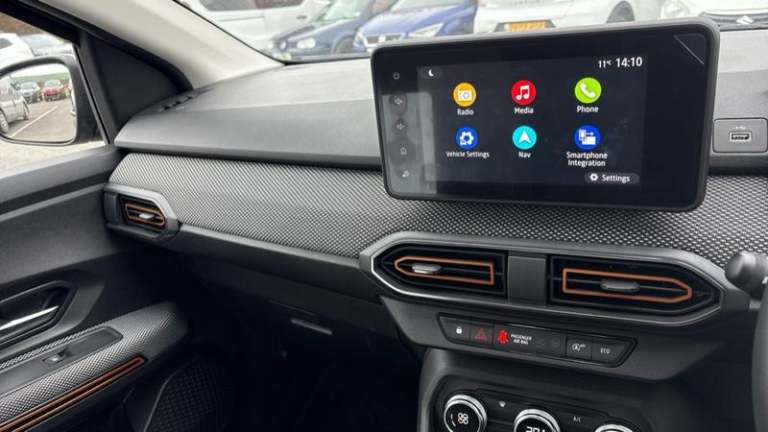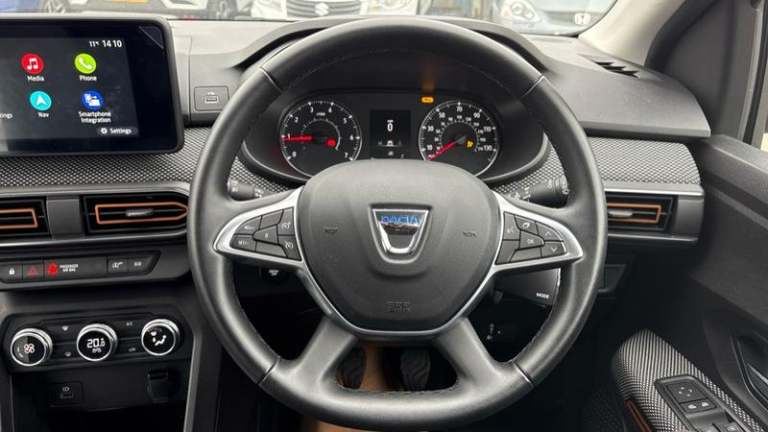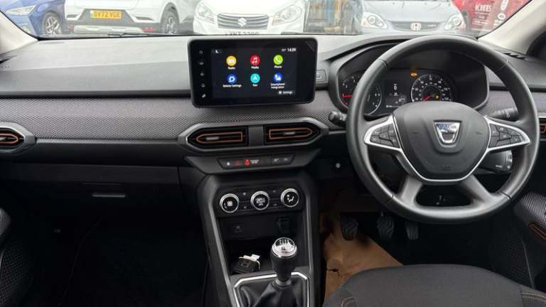 8in MediaNav with DAB Radio, Emergency Call - E-Call, Front 12v Plug, Rear 12v Plug, USB Connection for Data Transfer and Charging, USB Socket, Blind Spot Warning, Cruise Control and Speed Limiter, Door Open - Visual and Audible Warning, ECO Mode, Front and Rear Parking Sensors and Rear-View Camera, Gear Shift Indicator, Rev Counter, Tyre Pressure Monitor, 16in Alloy Wheels - Diamond-Effect, Bumpers - Front and Rear Body Coloured, Door Handles - Body Coloured, Door Mirrors - Body Coloured, Door Mirrors - Heated and Electrically Adjustable, Drivers One Touch Electric Windows and Rear Electric Windows, Heated Rear Window, Longitudinal Roof Bars - Chrome, Modular Roof Bars, Radiator Grille - Chrome, Tinted Windows, Tyre Inflation Kit, Automatic Lighting System, Front Fog Lights, High Level Third Brake Light, LED Automatic Daytime Running Lights, LED Y Shape Dacia Lighting Signature, 3 Height-Adjustable Rear Headrests, 3-Speed Front Windscreen Wipers, Air Vents - Satin Chrome and Copper Orange, Automatic Air Conditioning, Automatic Central Locking, Automatic Wiper, Deco Part on Instrument Panel and Door with Textile, Driver and Passenger Vanity Mirror with Cover, Fixed Smartphone Holder on Dashboard, Height and Depth-Adjustable Steering Wheel, Height-Adjustable Drivers Seat, Height-Adjustable Front Headrests, High Central Armrest with Console Storage, Interior Door Handles - Satin Chrome, New 3.5in TFT Instrument Panel with Onboard Computer, Rear Washer-Wipe, Soft Feel Steering Wheel,