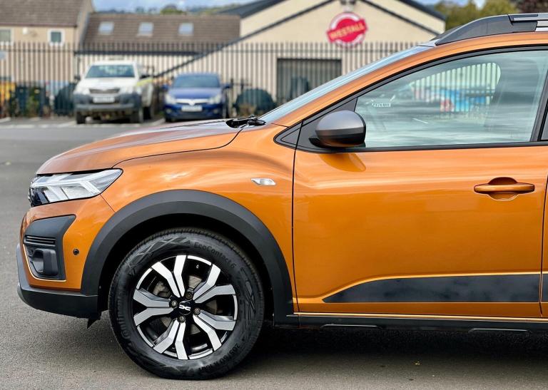 This 2023 Dacia Sandero Stepway TCe Journey is a superb example, having been owned by just one careful owner from new. This Euro 6 compliant 1.0 litre petrol model offers a refined driving experience, enhanced by its Journey trim level. Inside, you'll find an 8 inch MediaNav system complete with DAB radio, Android Auto, and Apple CarPlay, ensuring seamless connectivity. The distinctive LED Y shape Dacia lighting signature, including LED headlights, provides excellent visibility. For comfort, it features automatic air conditioning with climate control, and parking is made effortless with front and rear parking sensors and a rear view camera. Keyless entry adds a touch of modern convenience.The generous boot space in this Sandero Stepway is a standout feature, offering ample room for luggage, shopping, or equipment, making it more practical than many other vehicles in its class. The combination of its fuel efficient 1.0 litre engine, advanced infotainment system, and comprehensive parking assistance technologies positions this Dacia Sandero Stepway TCe Journey as a highly capable and user friendly choice for everyday driving.