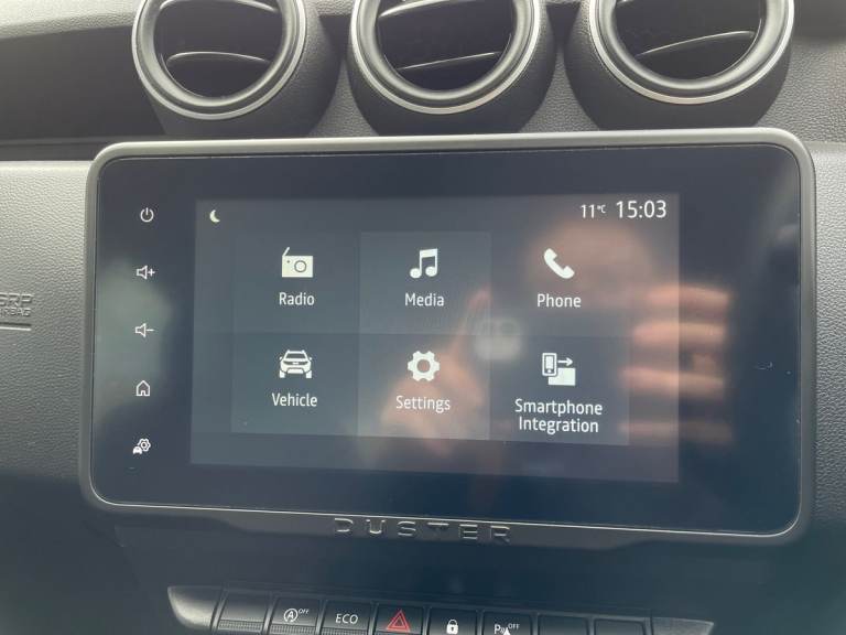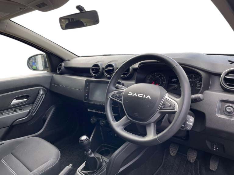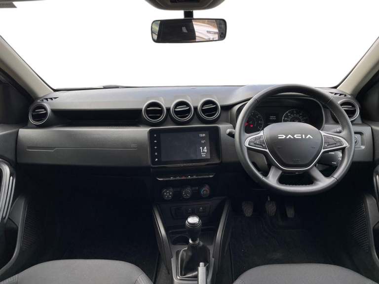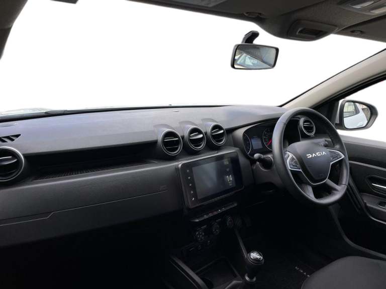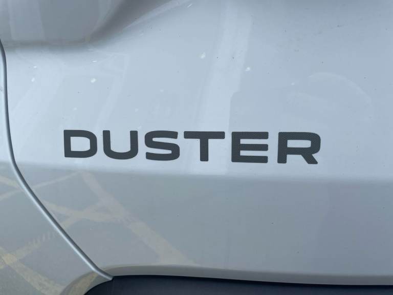 ..Cruise control and speed limiter, eCall emergency system, Eco mode, Electric power assisted steering, On board computer, odometer, trip computer, average fuel consumption, average speed, service indicator, outside temperature gauge, Rear parking sensors, Rev counter, Reversing camera, Stop/start system, 8'' Media display with smartphone replication, 2 usb sockets and 6 speakers, Dacia plug and radio/MP3/USB/bluetooth/DAB/steering wheel control, 3 speed windscreen wipers, Black longitudinal roof bars with Duster inscription, Black side sills, Black/satin chrome tailgate trim with Duster inscription in black background and lettering, Body coloured door handles, Chrome front grille with hot stamping, Chrome logo surround on steering wheel, Daytime running lights, Drivers window one touch up/down, Dusk sensor, Electric adjustable/heated door mirrors, Electric front windows, Electric rear windows, Front and rear body coloured bumpers, Front door sill protection strip, Front fog lights, Heated rear window, High level third rear brake light, Rain sensor, Rear side wing doors, Rear spoiler, Rear wash/wipe, Satin chrome door mirrors, Tinted windows, Underbody protection skid plates, Y shaped LED headlights with rear LED lights, 3 rear height adjustable headrests, 3 seat bench in 2nd row, 60/40 split folding rear seat, Backlighted steering wheel buttons, Boot light, Driver seat lumbar adjustment, Fabric decorative insert on door panels, Fabric upholstery, Front head restraints, Front passenger reading light, Gear shift indicator, Height adjustable driver seat, Height adjustable front and rear headrests, Height and depth adjustable steering wheel, High centre console with driver armrest, Isofix points for child seats in both outer rear seats, Manual air conditioning, Map pocket on front seat backs, Passenger sunvisor with vanity mirror, Rear passenger reading light, Satin chrome interior door handles, Satin chrome lower steering wheel insert, Single front passenger seat, Soft feel leather steering wheel, 3x3 point rear seatbelts, ABS and Emergency brake assist, ASR traction control with Electronic stability control, Child locks on rear doors, Door open visual and audible warning, Driver airbag, Driver and passenger seatbelt not fastened - visual and audible warning, EBD - Electronic brakeforce distribution, Front passenger airbag, Front passenger airbag deactivation, Front seatbelt pretensioners, Front side airbags, Height adjustable front seatbelts, Hill start