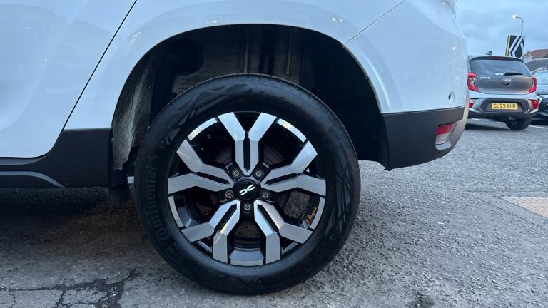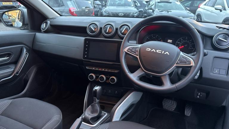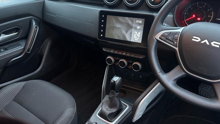 Discover rugged SUV practicality with modern comfort and rare automatic convenience in this 2024 Dacia Duster Estate 1.3 TCe 150 Journey EDC, finished in Glacier White and showing just over 14,000 miles. This example combines the Duster's well-known capability with an EDC automatic gearbox, a specification not often found on Dacia's robust SUV, making it a particularly desirable choice for everyday driving.Powered by the responsive 1.3 TCe 150 turbo petrol engine, this Duster delivers effortless performance with strong mid-range power and confident acceleration - ideal for both urban streets and longer journeys. The smooth automatic transmission adds ease and refinement to every drive, especially in stop-start traffic or on country roads where convenience matters most.The Journey trim brings a well-balanced specification, with features designed to enhance comfort and modern usability. Inside, you'll find an intuitive touchscreen infotainment system with Apple CarPlay and Android Auto support for seamless smartphone connectivity, making navigation, calls and entertainment easy on the move. Practical touches such as climate control, cruise control and rear parking sensors help make every journey more relaxed.The estate body provides generous boot space and flexible load-carrying capacity, perfect for family life, active lifestyles or weekend escapes, while the comfortable seating and thoughtful cabin layout ensure enjoyable drives for all occupants.With its rare automatic gearbox, low mileage, Glacier White paintwork and strong specification, this 2024 Dacia Duster Journey EDC represents excellent value in a versatile and capable SUV package.A personalised video is available on request..Alloy Wheels, DAB Radio, Bluetooth, USB& Auto Lights, Dark glass on lateral rear windows, Acoustic windshield, Electric front windows, Electric rear windows, Rain sensor, Rear wash/wipe, Heated rear window, Automatic front wipers, 3 speed windscreen wipers, Drivers window one touch up/down, Hill start assist, ABS and Emergency brake assist, ASR traction control with Electronic stability control, EBD - Electronic brakeforce distribution, Cruise control and speed limiter, Eco mode, Electric power assisted steering, Blind spot warning, Multi view camera, Rear parking sensors, Reversing camera, eCall emergency system, Dusk sensor, Stop/start system, On board computer, odometer, trip computer, average fuel consumption, average speed, service indicator, outside temperature gauge, Rev counter, Electric folding door mirrors, Satin chrome door mirrors, Electric adjustable/heated door mirrors, Charcoal grey central console surround
