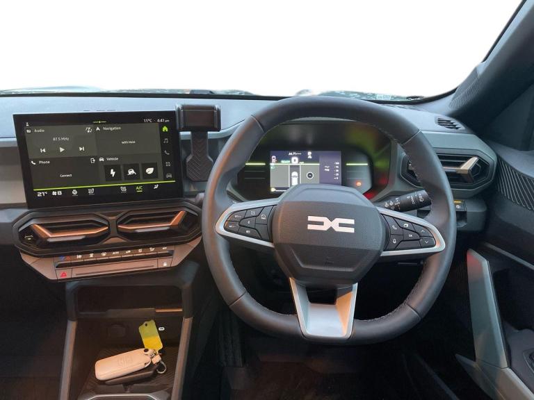 The Dacia Duster 1.6 Hybrid 140 Extreme 5Dr Auto Estate in a striking Green colour is a true beauty. With only 2000 miles on the clock, this 2025 model features 18"" Semi diamond cut tagasan alloy wheels that complement its rugged look. The interior is equipped with a 10.1"" media nav live system complete with connected navigation, DAB, smartphone replication, Bluetooth, and connected services. Safety features include 6 airbags, ABS, emergency brake assist, lane departure warning, and blind spot warning. The vehicle also boasts modern conveniences like automatic air conditioning, Apple CarPlay, Android Auto, cruise control, heated seats, and a wireless phone charger. With a spacious interior, advanced technology, and robust design, the Dacia Duster is ready to take on any adventure on British roads.