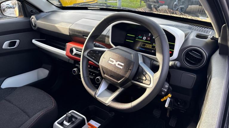 This 2025 Dacia Spring 65 Expression is an exceptional example, boasting remarkably low mileage for its age, having covered just 521 miles. As an all electric vehicle, it offers an efficient and eco-friendly driving experience. This particular model features a 27 kWh battery, providing a maximum range of 140 miles when new. For convenience, it can be fully charged at home using a 7kW charger in approximately 5 hours, and public charging can replenish it from empty to 80% in as little as 1 hour. Notable features include manual air conditioning for your comfort and rear parking sensors to assist with manoeuvring.The Dacia Spring 65 Expression stands out with its practical design and cost effective running costs. Its electric powertrain ensures a quiet and smooth journey, making it an ideal choice for city driving and daily commutes. The impressive charging times, both at home and on public chargers, mean less time waiting and more time on the road. Compared to other vehicles in its class, the Spring offers a compelling combination of affordability, efficiency, and essential modern features, making it a smart and sensible choice for those seeking an electric vehicle..Carpet mats, DC charger, Rain sensor, Heated rear window, Tinted windows, 3 speed windscreen wipers, Automatic wipers, Front electric windows, Rear wash wiper, ABS+EBA, ESP + Hill Start Assist, Automatic Emergency Braking System (AEBS), Cruise control + speed limiter, Lane departure warning system, Lane keep assist system, Rear parking sensors, Driver attention warning, Electric power assisted steering, Event data recorder, Emergency Stop Signal (ESS), Traffic sign recognition with speed alert/Intelligent speed assist (ISA), Rescue code, e-Call (emergency call), Black door mirrors, Manually adjustable door mirrors, Brick red dashboard decopart, White airvents inserts, Mode 3 charging cable, USB socket, Media control - DAB radio with display on instrument panel, bluetooth, 2 speakers, USB-C plug, Body colour door handles, Rear side wing doors, Front and rear Bumper, body coloured with black elements and grey insert, Front fog lights