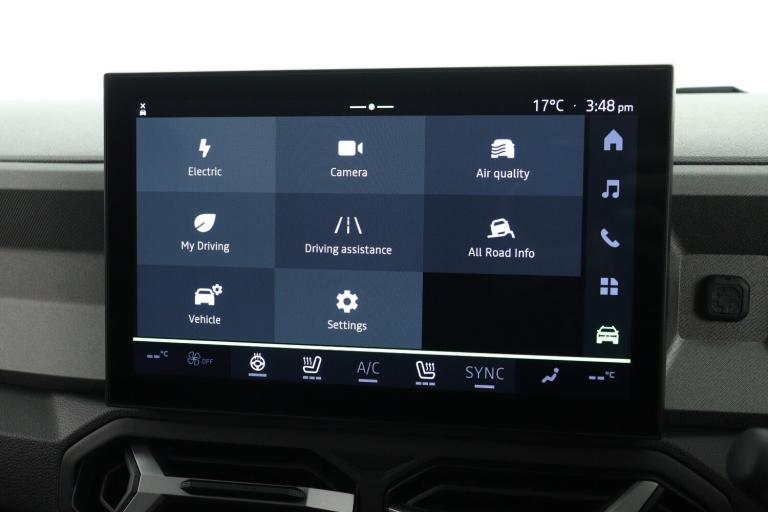 ..10'' Digital Cluster, 10'' digital driver display, Adaptive cruise control, ADAS Disconnect (advance driving systems disconnect) - My Safety, Apple CarPlay and Android Auto, Blind spot warning, Driver attention warning, E Save, eCall emergency system, Eco mode, Electric power assisted steering, Emergency Stop Signal (ESS), Energy smart management, Event data recoder, Forward collision warning, Front and rear parking sensors, Lane departure warning with lane keep assist, Multi view camera, Power tailgate, Rescue code, Speed limiter, Stop/start system, Traffic sign recognition with speed alert/Intelligent speed assist (ISA), Wireless phone charger, 10.1'' media nav live with connected navigation, DAB, smartphone replication, bluetooth, connected services, USB-C plug (front and rear),plus app store, Arkamis sound system with 6 speakers, Auto lighting system, Automatic wipers, Black with white trim radiator grille, Body coloured door handles, Dark glass, ECO LED Front foglights, Electric adjustable/heated door mirrors, Electric front windows with driver's one touch operation, Electric rear windows, Front and rear body coloured bumpers, Grey longitudinal roof bars, Grey Y-Shaped air vents inserts, Heated rear windows with wash wipe, High beam assist, High level third rear brake light, LED automatic daytime running lights, Privacy rear window, Rain sensor, Rear side wing doors, Shark fin antenna, Side protection, Tinted acoustic windshield, Turning signal integrated in door mirrors, Wheel arch protection and snorkel in starkle, White rear Dacia lettering, Y-shaped LED lighting signature, 3 rear height adjustable headrests, 3 seat bench in 2nd row, 40/20/40 rear bench with an easy fold function, 6 way adjustable driver seat with lumbar support, 6 way adjustable front passenger seat with lumbar support, Dual zone automatic air conditioning, False floor, Front head restraints, Gear shift indicator, Grey gear lever deco part, Heated front seats, Heated steering wheel, Height adjustable front headrests, Height and depth adjustable steering wheel, High console with cooling storage + armrest, Isofix points for child seats in both outer rear seats, MicroCloud fabric washable TEP upholstery, Mid centre console micro cloud with soft feel, Rear 12v plug in boot, Removable parcel shelf, Single front passenger seat, Sunvisor for driver and passenger with mirror/ticket holder and light, Synthetic leather steering wheel, White steering wheel logo, 3x3 point rear seatbelts,