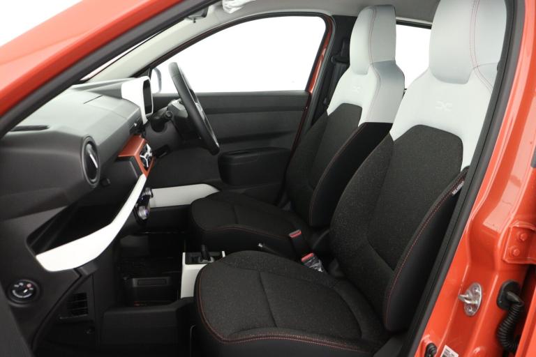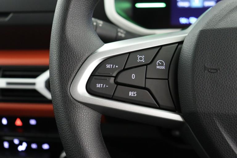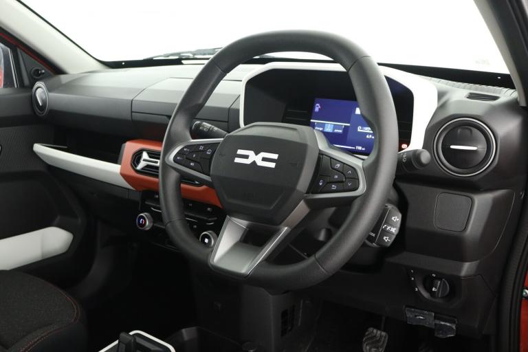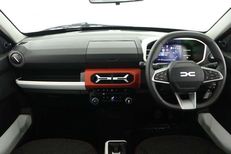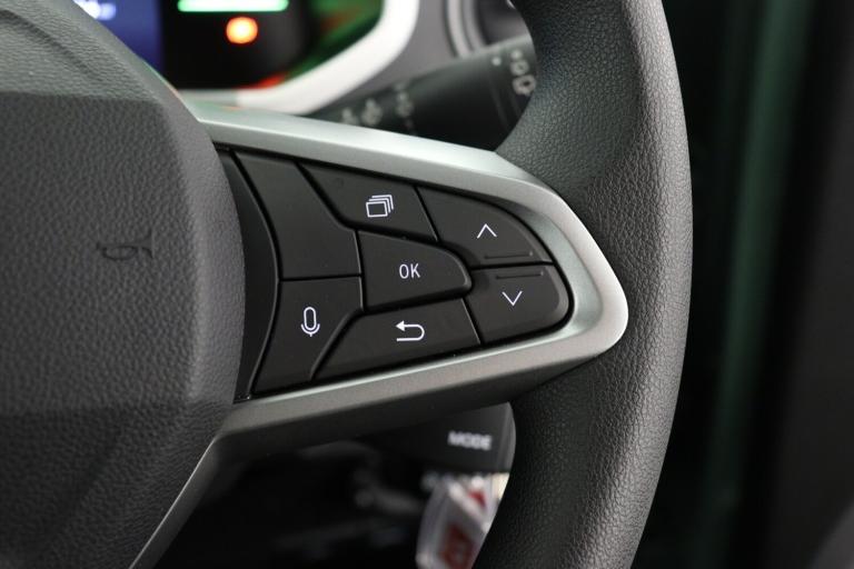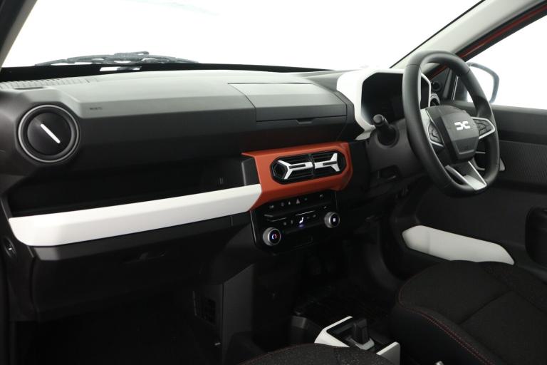 ..Cruise control + speed limiter, Driver attention warning, e-Call (emergency call), Electric power assisted steering, Emergency Stop Signal (ESS), Event data recorder, Lane departure warning system, Lane keep assist system, Rear parking sensors, Rescue code, Traffic sign recognition with speed alert/Intelligent speed assist (ISA), Mode 3 charging cable, Media control - DAB radio with display on instrument panel, bluetooth, 2 speakers, USB-C plug, USB socket, 3 speed windscreen wipers, Automatic headlights, Automatic wipers, Black door mirrors, Body colour door handles, Front and rear Bumper, body coloured with black elements and grey insert, Front electric windows, Heated rear window, High level third rear brake light, LED automatic daytime running lights, LED Y shape Dacia signature lighting, Manually adjustable door mirrors, Rain sensor, Rear fog lights, Rear side wing doors, Rear wash wiper, Tinted windows, 1 piece folding rear bench seat back, 12V socket in front, Carpet mats, Fabric upholstery, Front headrests, Grey interior door handles, Height adjustable steering wheel, ISOFIX attachment on outer rear seats, Manual air conditioning, Rear headrests, Single front passenger seat, Soft feel steering wheel, 6 airbags - Driver, front passenger, curtain and side airbags, ABS+EBA, Alcohol imoboliser predisposal, Automatic Emergency Braking System (AEBS), Child locks on rear doors, Door open visual and audible warning, Driver and passenger seatbelt not fastened warning, ESP + Hill Start Assist, Front seatbelt pretensioners, Side impact protection, Two 3 point rear seatbelts, Tyre pressure monitor, Engine immobiliser, Remote central locking, Brick red dashboard decopart, White airvents inserts, 14'' steel wheels, Cians styler cover for 14'' steel wheels, Tyre inflation kit