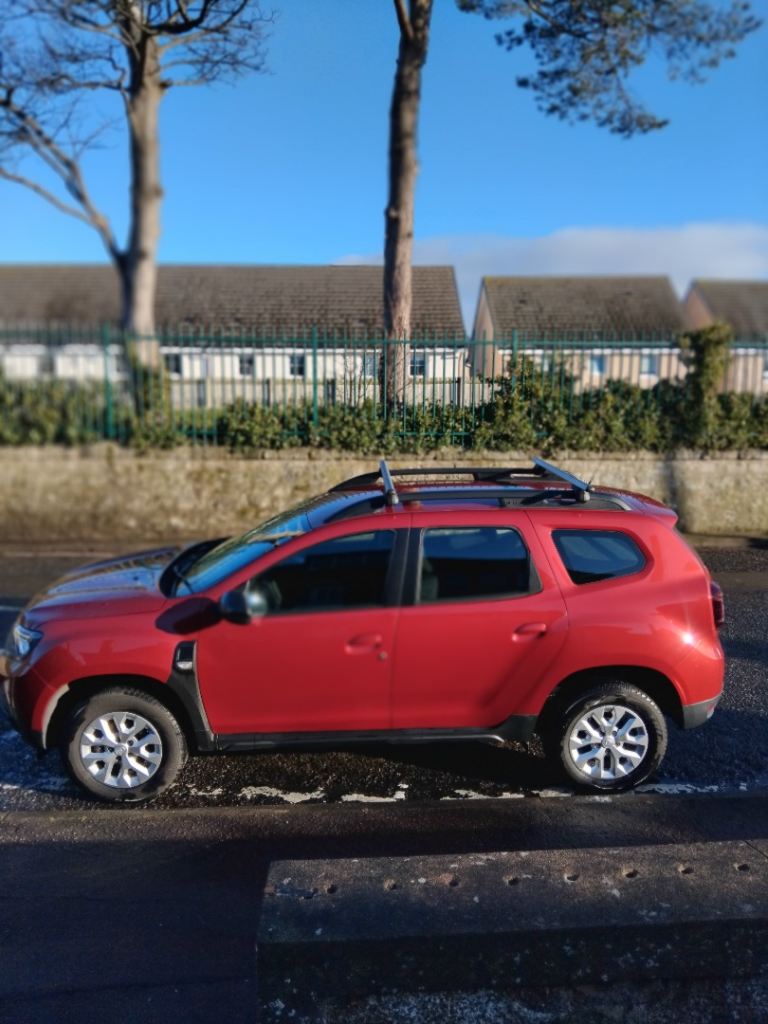 £11500 Or Nearest Offer,Full Tank of Petrol included Dacia Duster Comfort MOT Jan 27,FSH,Metallic Red, Alloy wheels, Remote Keys, Air con, Electric Windows and Mirrors,Auto Wipers Back and Front, Stop Start, Eco Drive System, Roof Rack and Cross Bars, Cruise Control, Hands Free, Rear Camera and Sensors, Tyre PM.Tinted Windows,Daytime Lights LED, Dusk Sensor,Front Fog lights,Seat Belt Warning,Traction Control,60/40 Folding Rear Seats,Large Boot With Removable Cover, One Previous Owner, 8”Touch Screen, MP3,USB,Bluetooth DAB Steering Wheel Control.