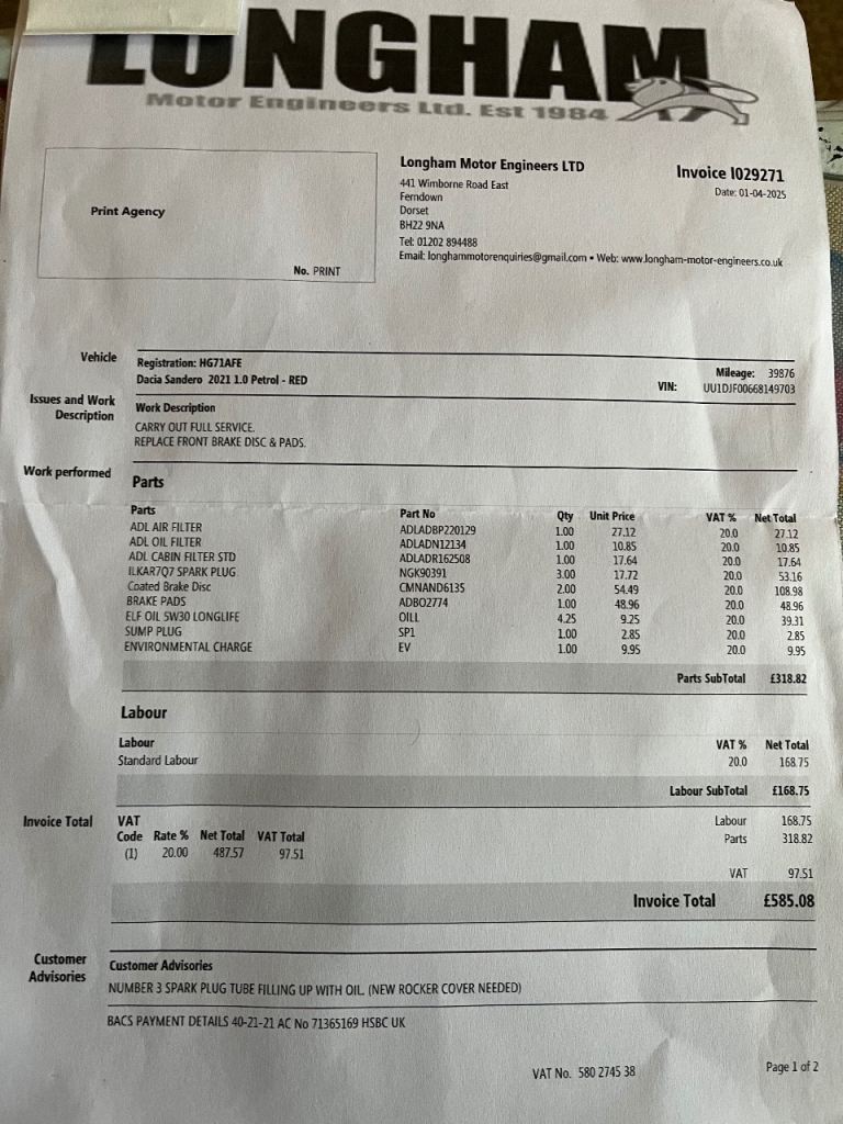 New discs and pads in April 25 as per advisory 2024 MOT.