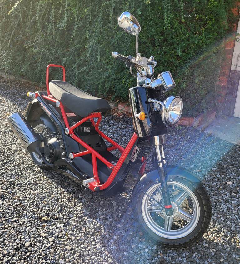 The B-Bone (bare bone) is a trellis scooter which clearly took inspiration from the honda zoomer/ruckus and uses a modern fuel injected 125 single cylinder paired to a cvt gearbox.