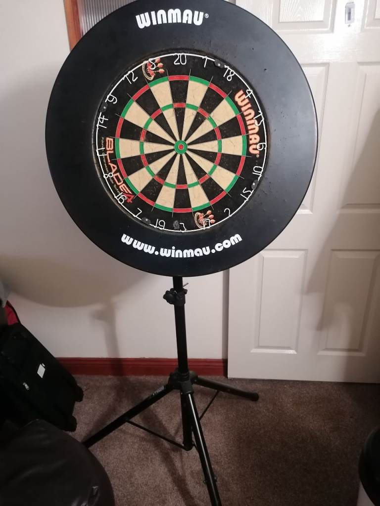 Dartboard on tripod.