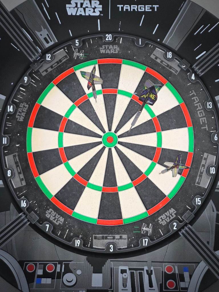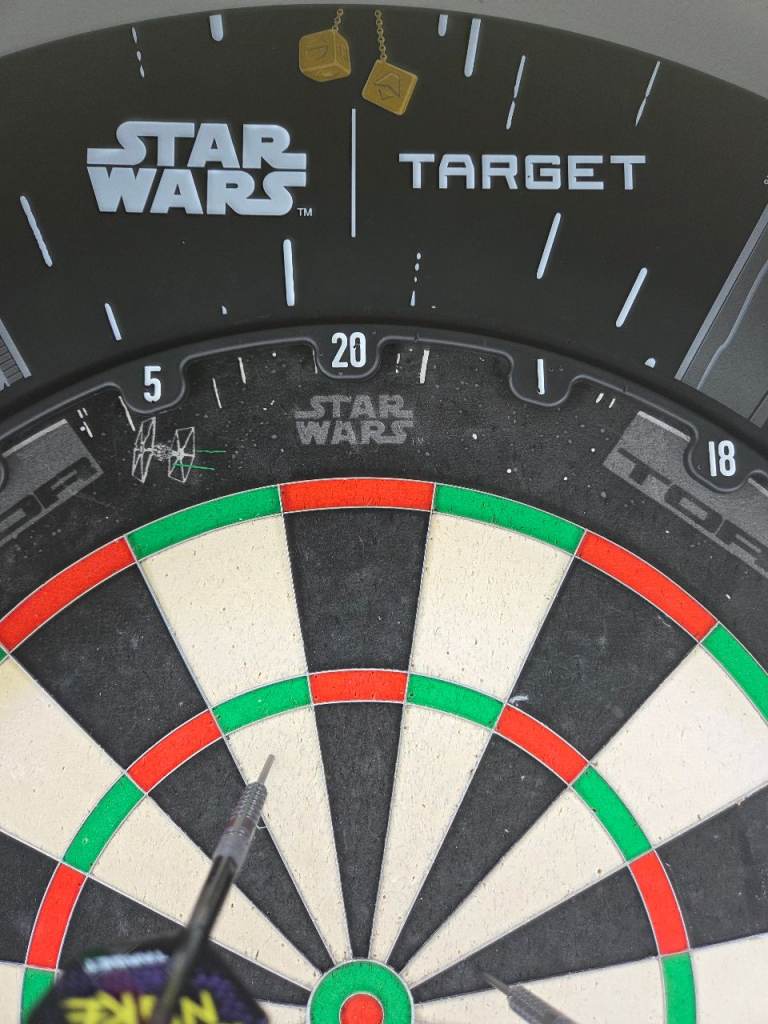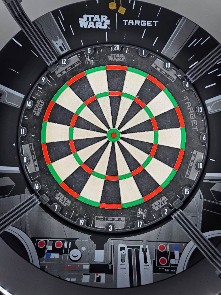 STAR wars special edition bundle, contains the star wars target tor dartboard and the millennium falcon surround, these cant be purchased separately, its lovely looking but my son is the nuke mad so he uses his dartboard instead, ita about 2 weeks old, I won't seperate them as it was a bundle from TARGET it was expensive the whole set and purchasing the light coat just shy of £200, only message if you are really interested ( please note no darts are included ) dartboard bracket will be provided COLECTION ONLY AS WITH THE WEIGHT IT WOULD COST A BOMB FOR DELIVERY, WILL CONSIDER OFFERS