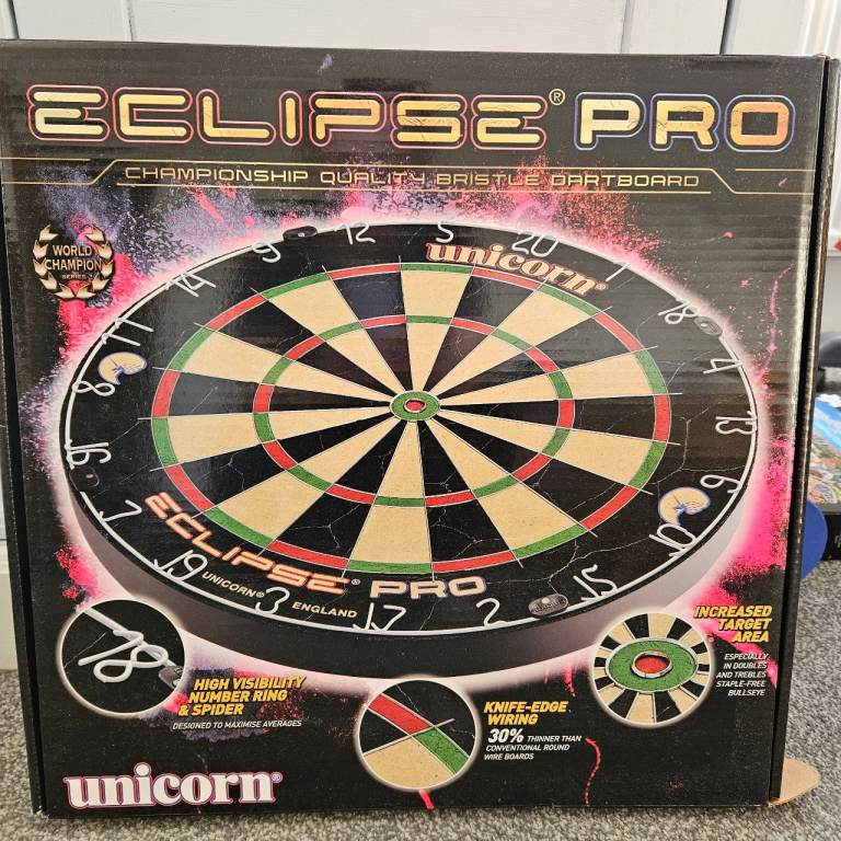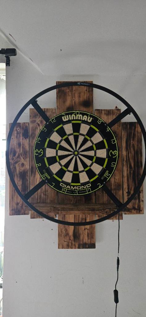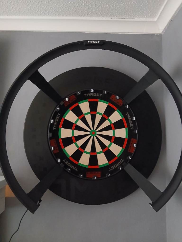 Winmau Michael Van Gerwen (MVG) diamond professional dartboard. This will come with the MVG surround, mat and Target LED ring light. All items in excellent condition. Only selling due to buying new set up. Set of free training darts and MVG flights and checkout card will be thrown in also. Can deliver in DD8 area otherwise COLLECTION ONLY.