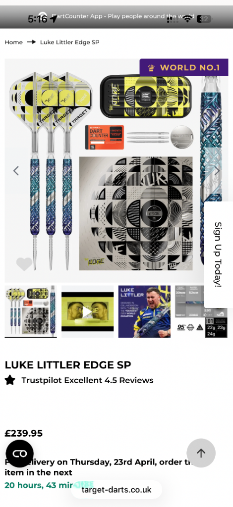 Posting for under a monthTarget Darts Luke Littler Edge 95% 23g SP Steel Tip Darts Set
