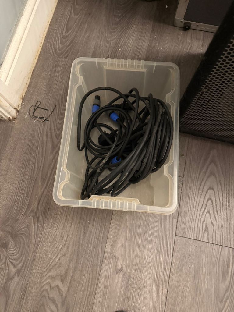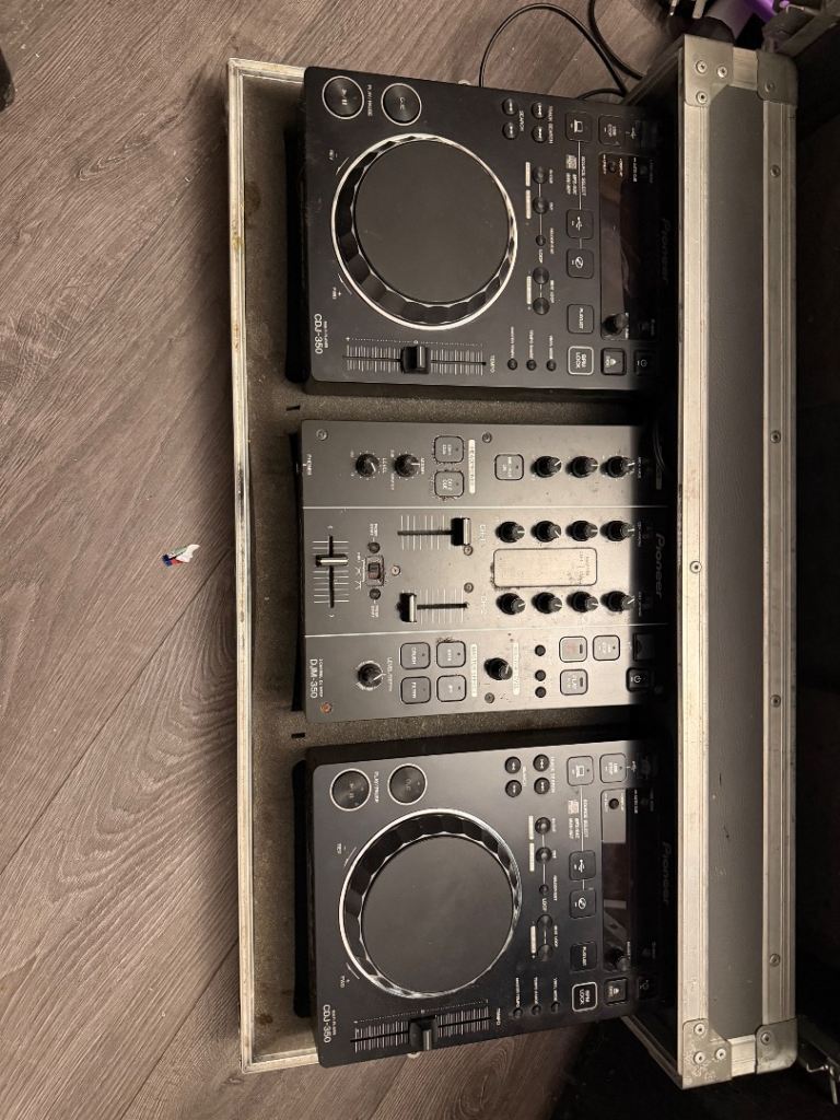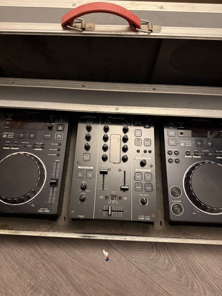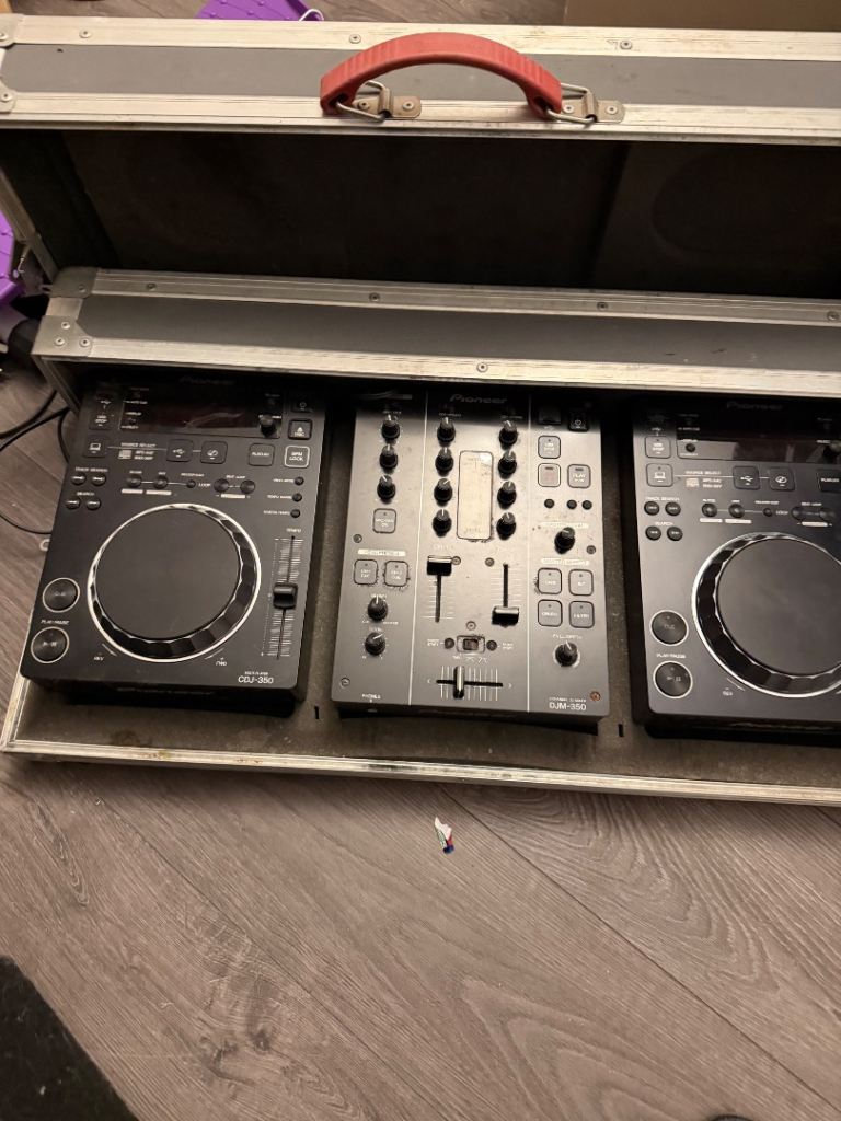 Used DJ equipment speakers decks in case professional amplifier all cables. Great all in one kit.