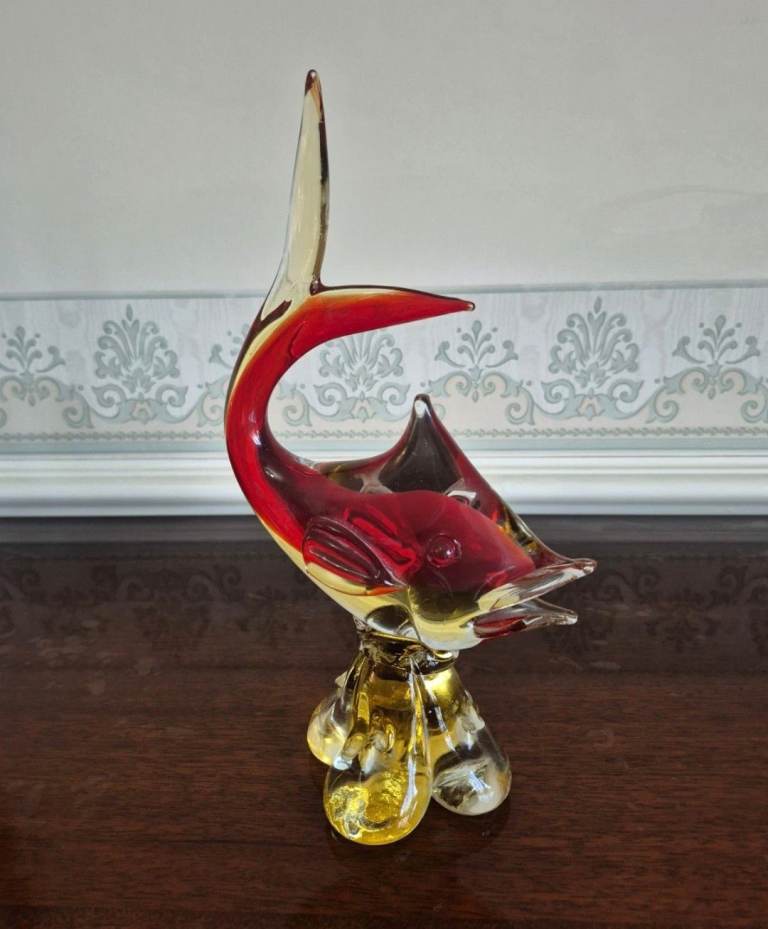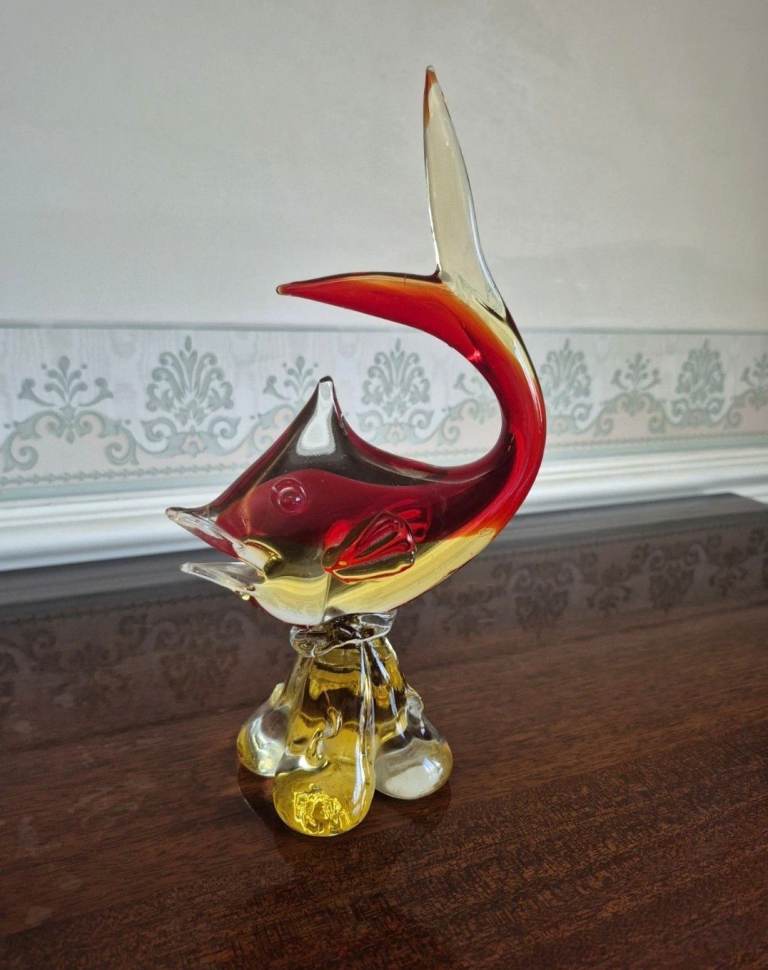 Posting for 1+ monthsBeautiful Vintage Red and Amber Murano Venetian Glass Fish 11" Sculpture VGC