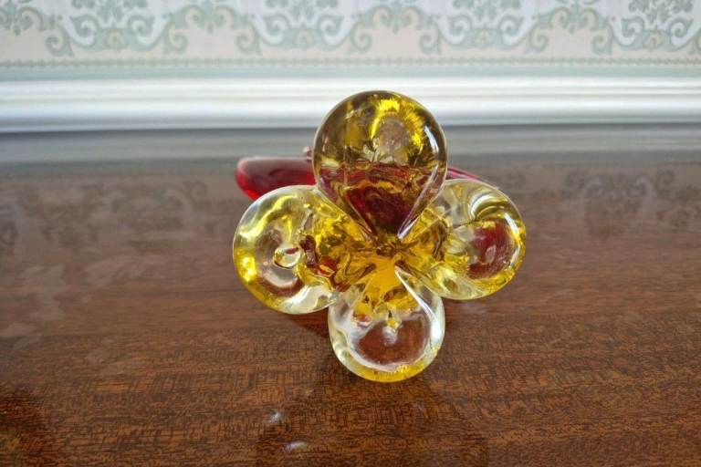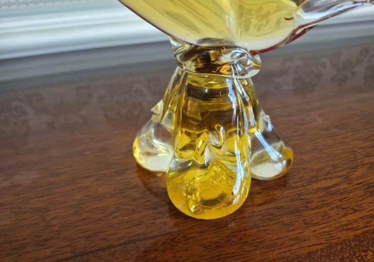 This beautiful vintage red and amber Murano glass fish leaping out of water sculpture ornament is a unique and handmade piece originating from Venice, Italy. The glossy finish and art glass production style give it a distinctive look, perfect for adding a touch of elegance to any space. Standing at 6 inches in length and 11 inches in height, this fish figurine is a decorative accent that showcases the craftsmanship and vibrant colours of Murano glass. The piece is unstamped, was purchased in Italy by my Grandparents.