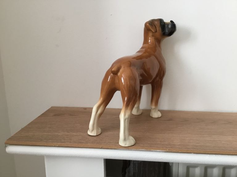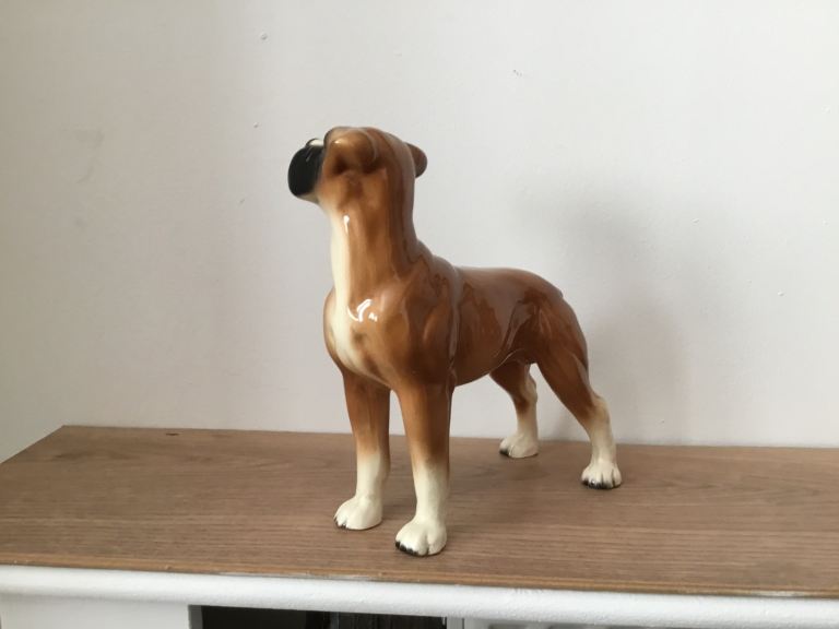 Vintage coopercraft boxer dog figurine is a charming collectible piece made in England it stand 20 cm In height made from ceramic or pottery