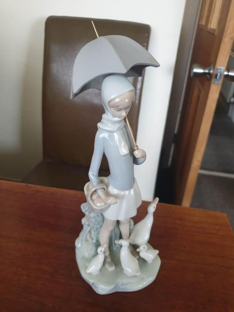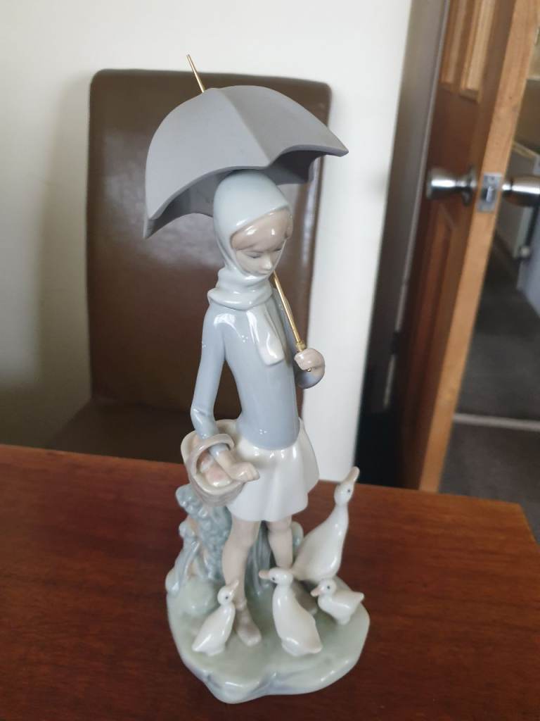 Lladro figurine girl with umbrella 28cm high in good condition