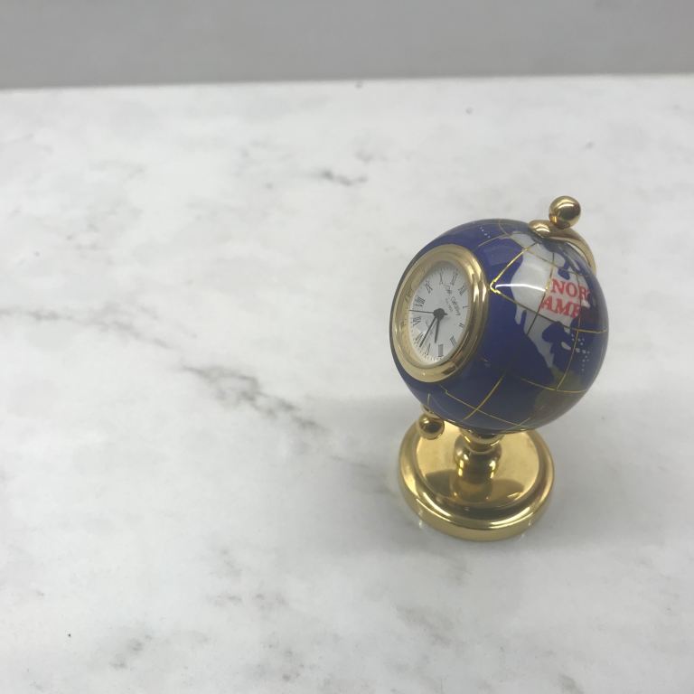 The little minature faberge style globe is a very decorative piece and has a little clock face inserted, may need a battery to get it goin, collection from Donaghadee