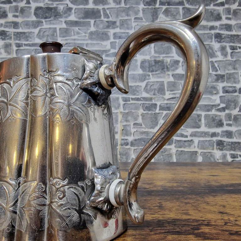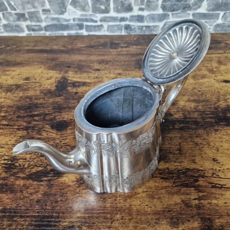Vintage Silver-Plated Floral Teapot with Hinged Lid