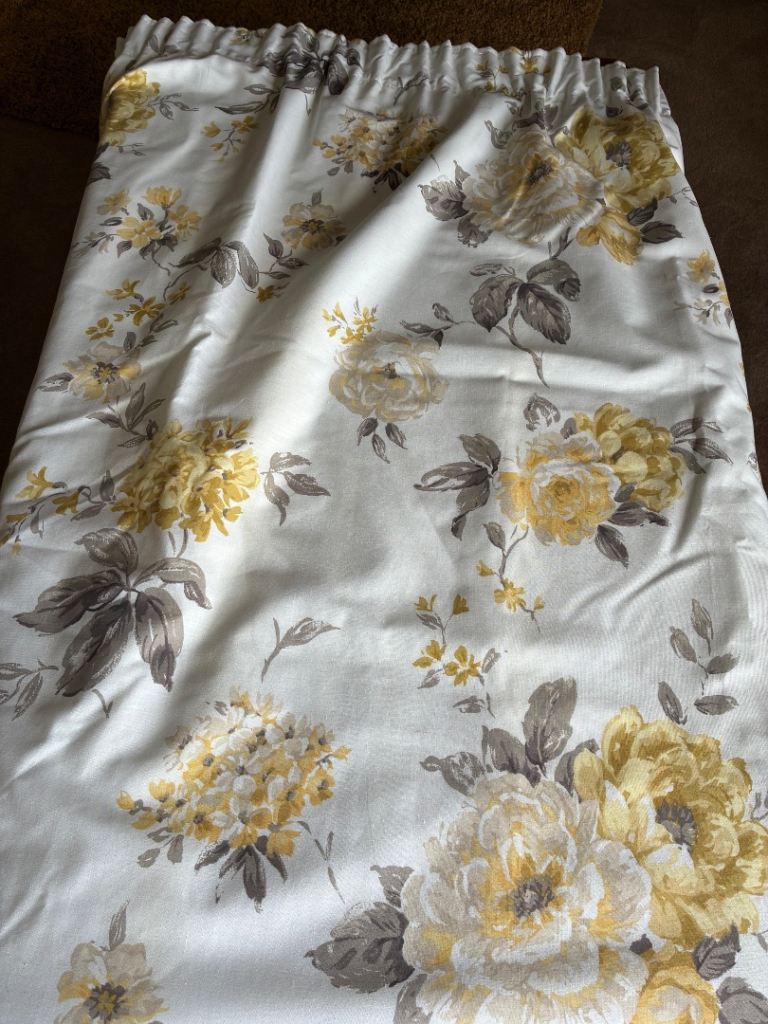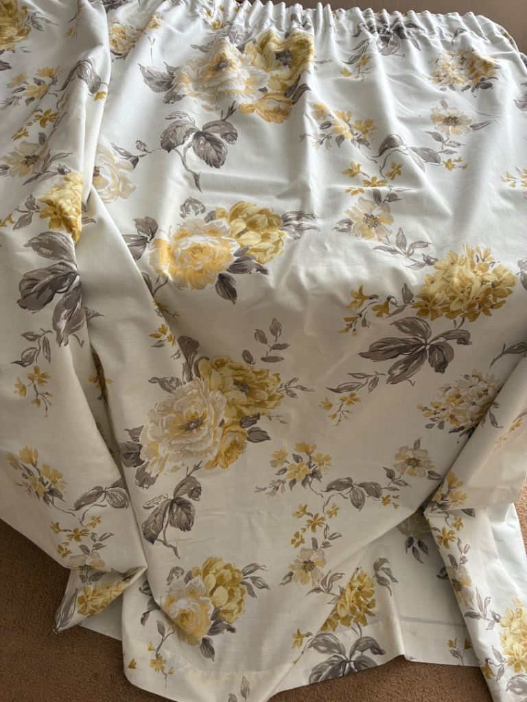 Bedroom curtains 66”D x 54”W (168cm x137cm)approx white grey yellow