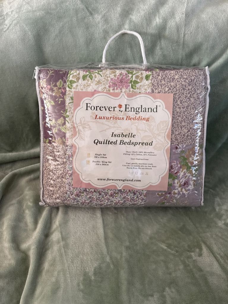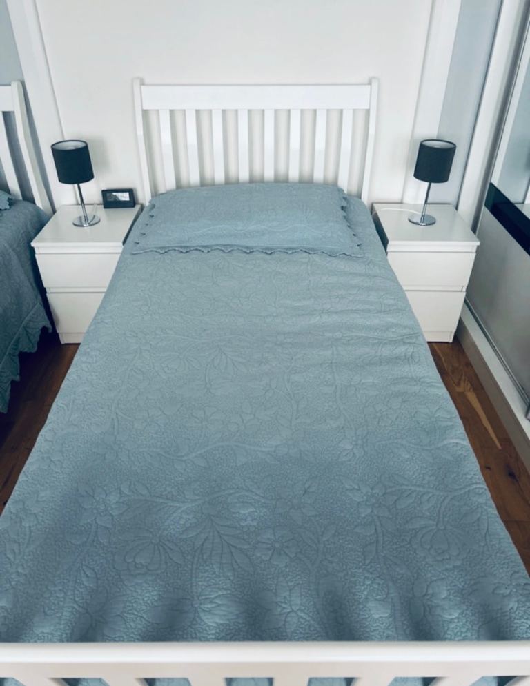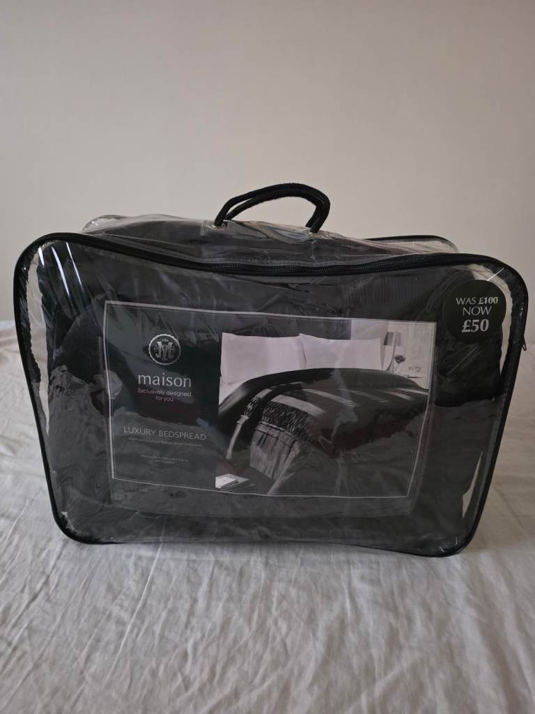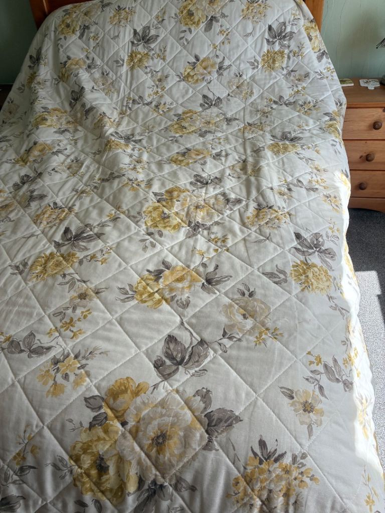 Bed cover 90”x 90” (232cm x 232cm approx white grey yellow